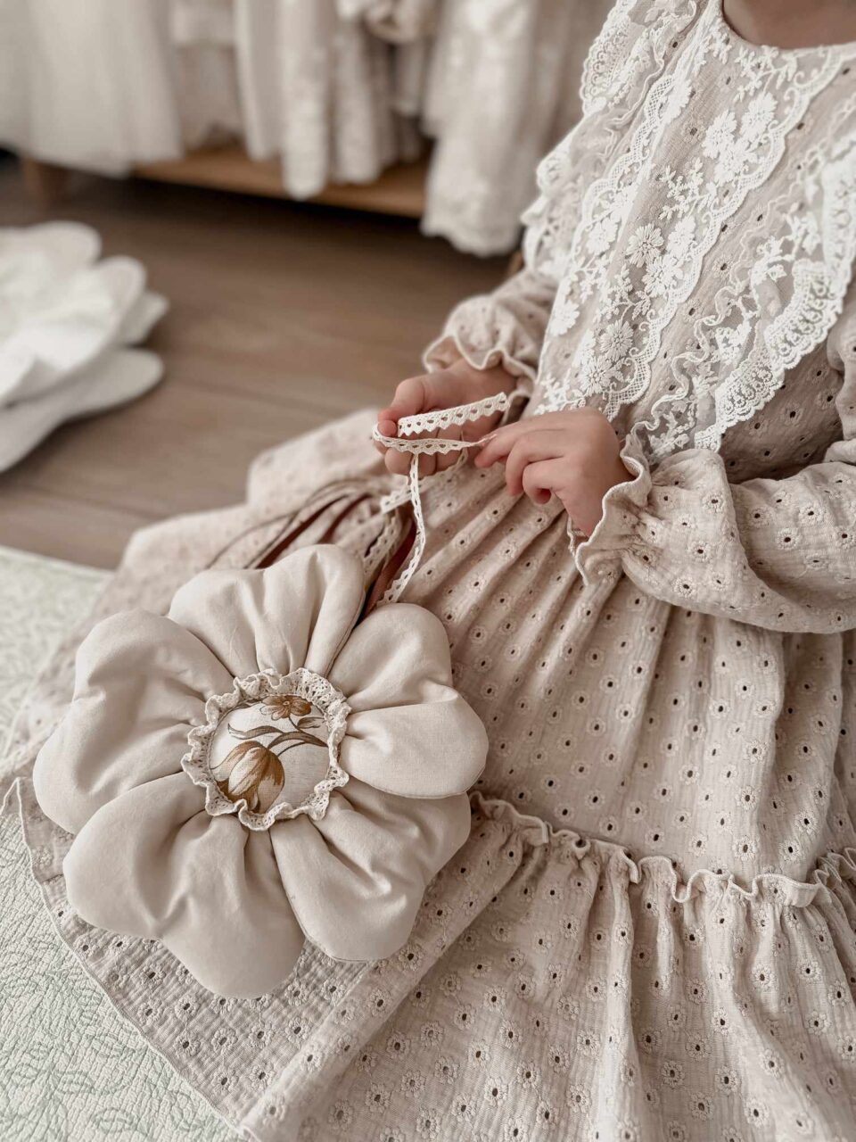 Różdżka do zabawy dla dziewczynki kwiatek ozdoba milk natural