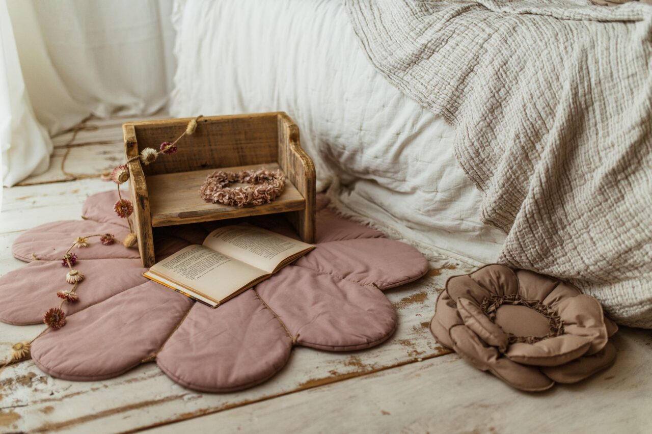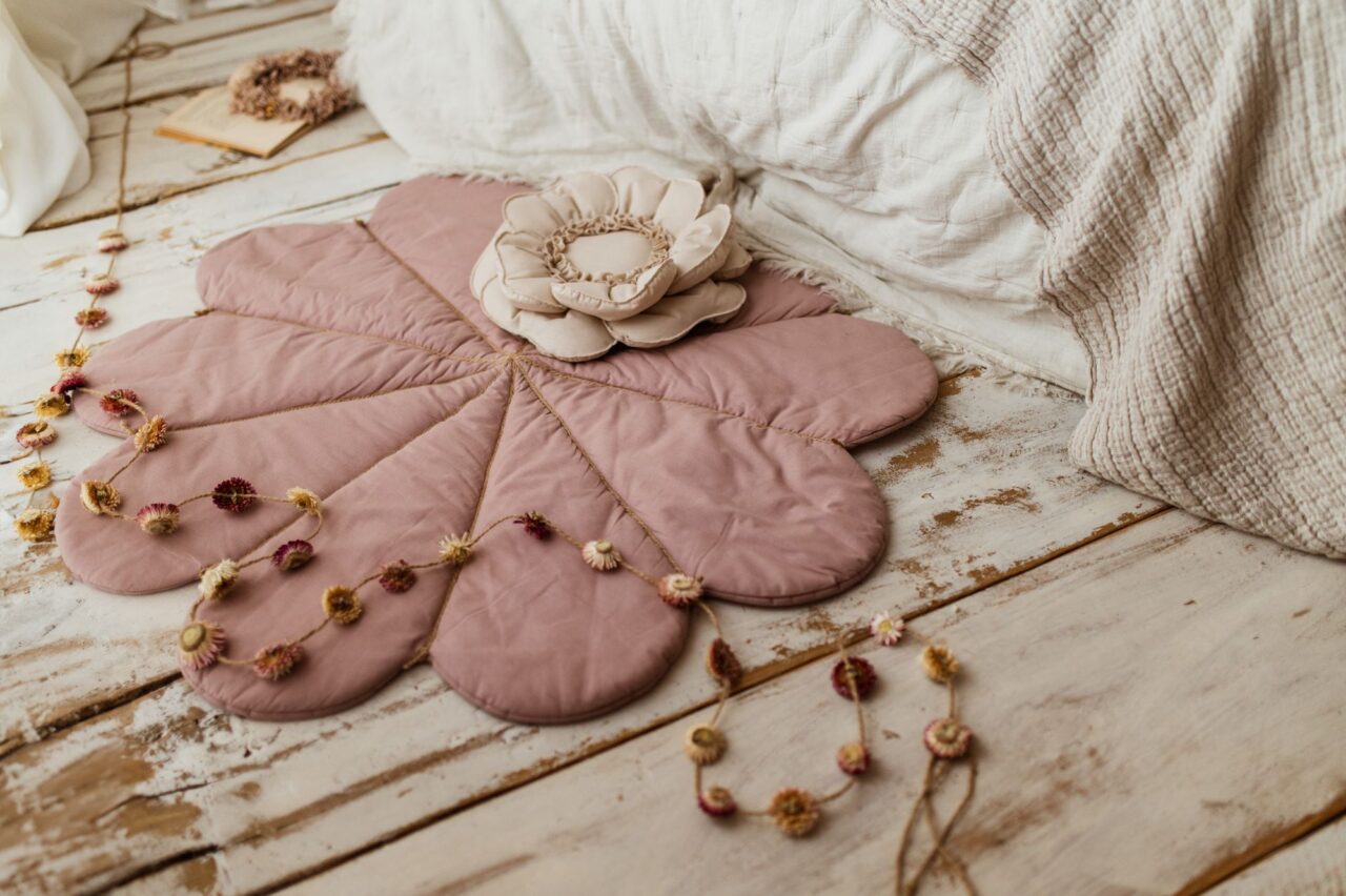 Różowa mata kwiat bawełniana do zabawy dla dzieci