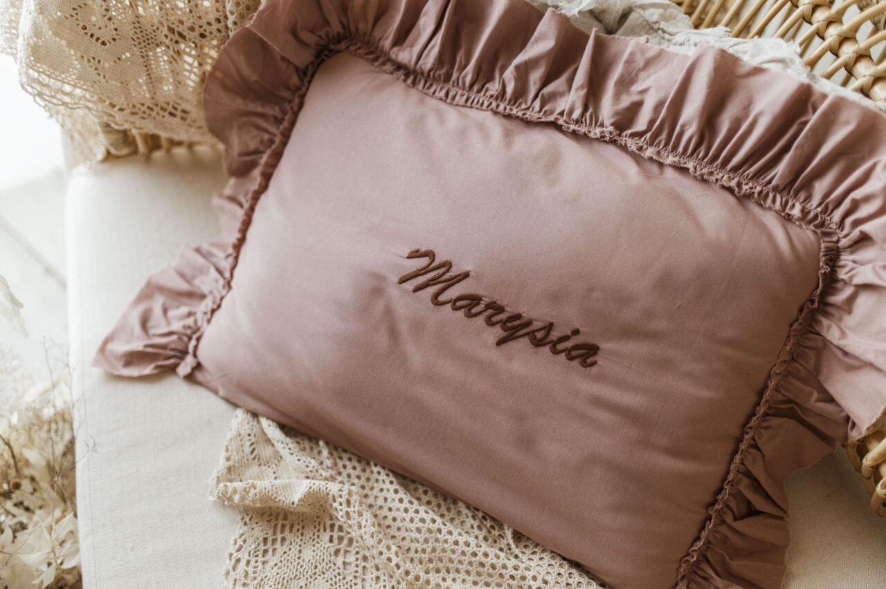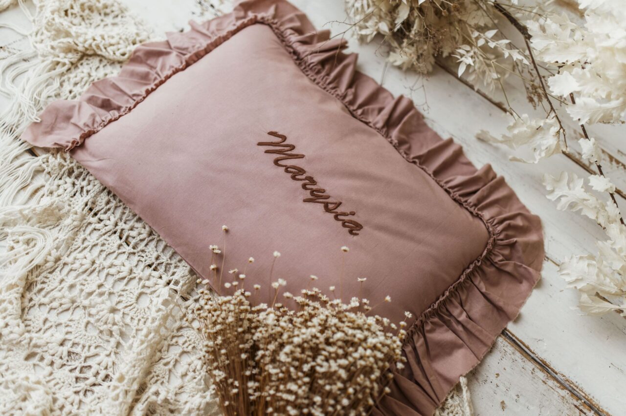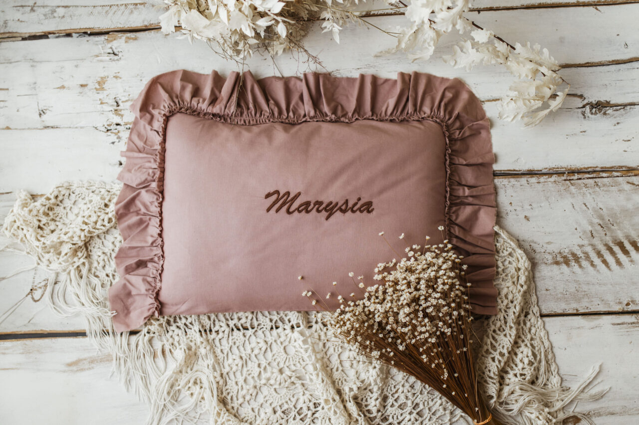 Różowa personalizowana poszewka na poduszkę twój haft