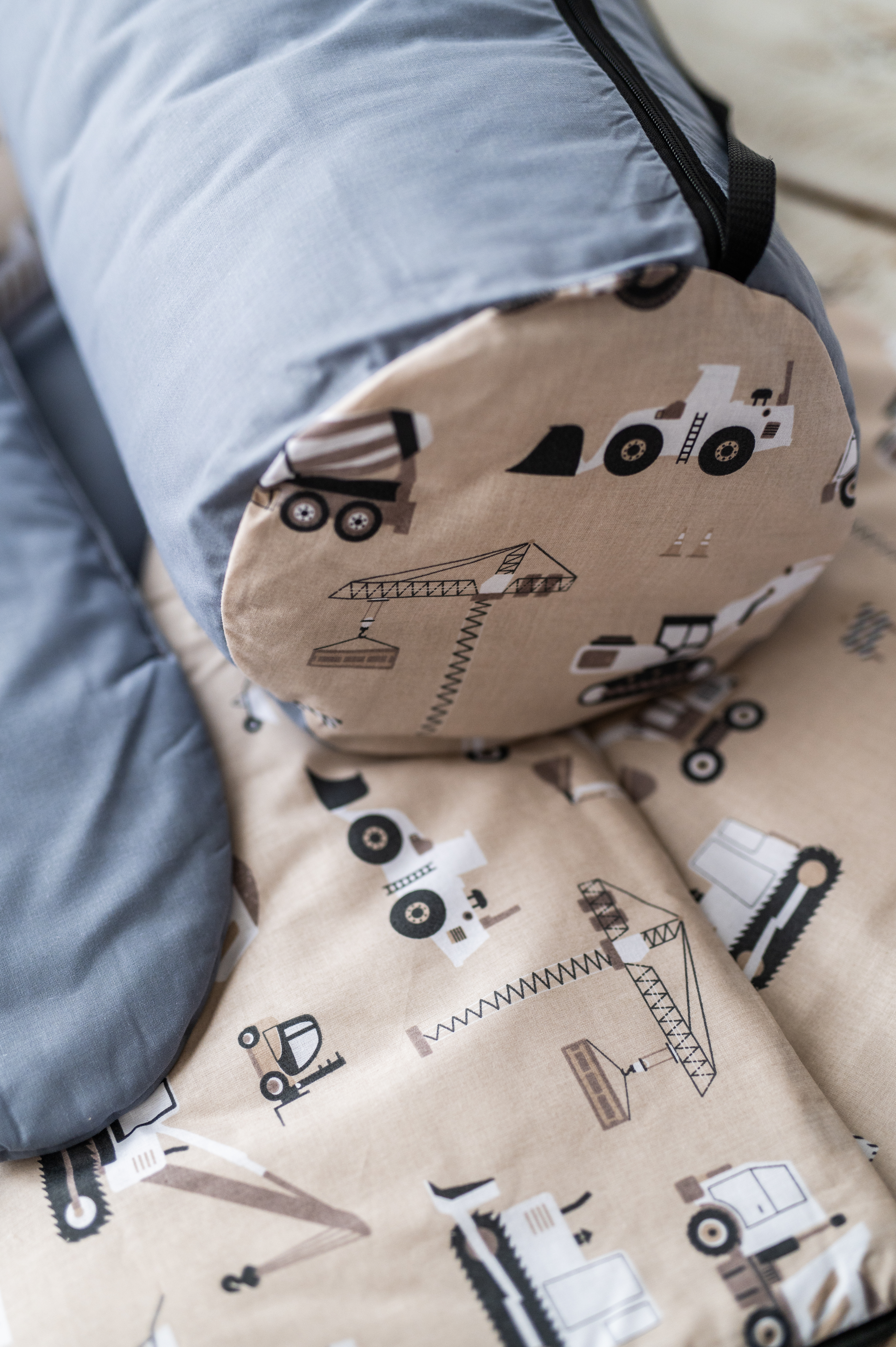 Śpiworek dla chłopca do przedszkola 120×60cm koparki beż