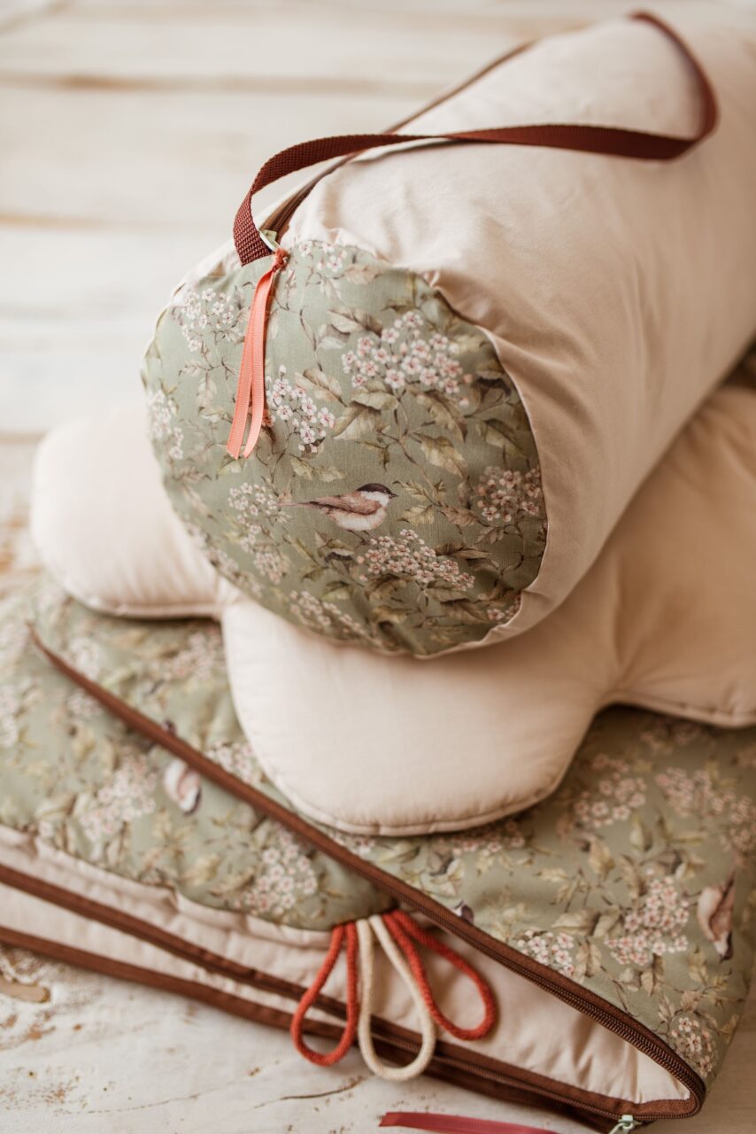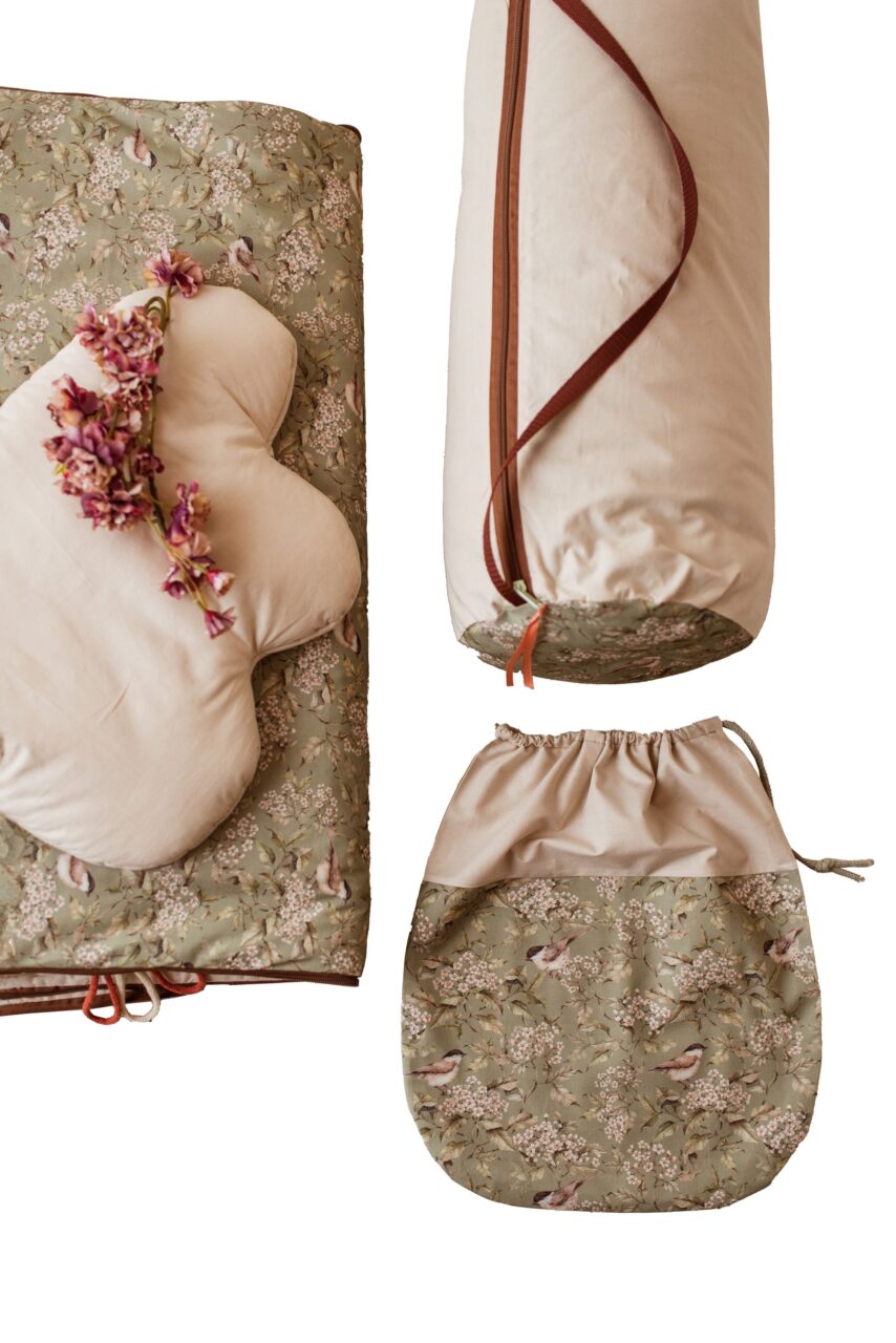 Śpiworek do przedszkola pościel premium bawełniana zestaw 3w1 wróbelki oliwka