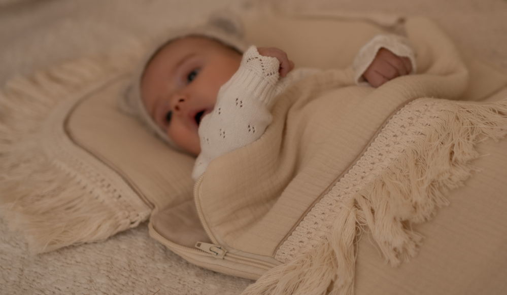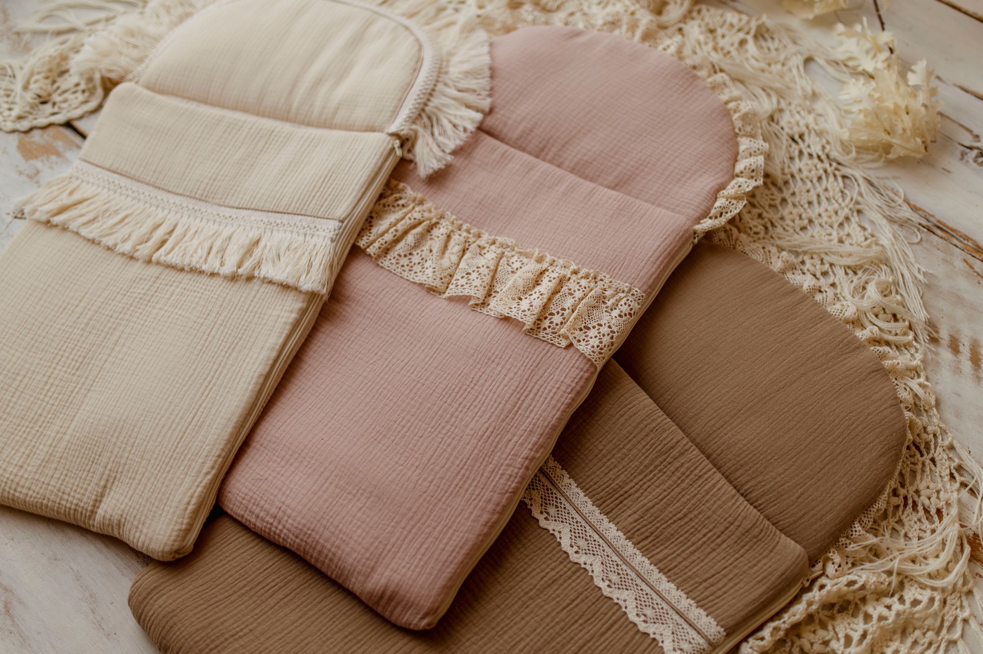 Każdy model śpiworka wyróżnia się starannym wykończeniem – delikatną falbanką wykonaną z bawełnianej koronki, która nadaje mu subtelnego uroku. W ofercie znajduje się także wyjątkowa wersja w stylu boho, ozdobiona uroczymi frędzelkami, która z pewnością przypadnie do gustu rodzicom szukającym unikalnych i stylowych rozwiązań.