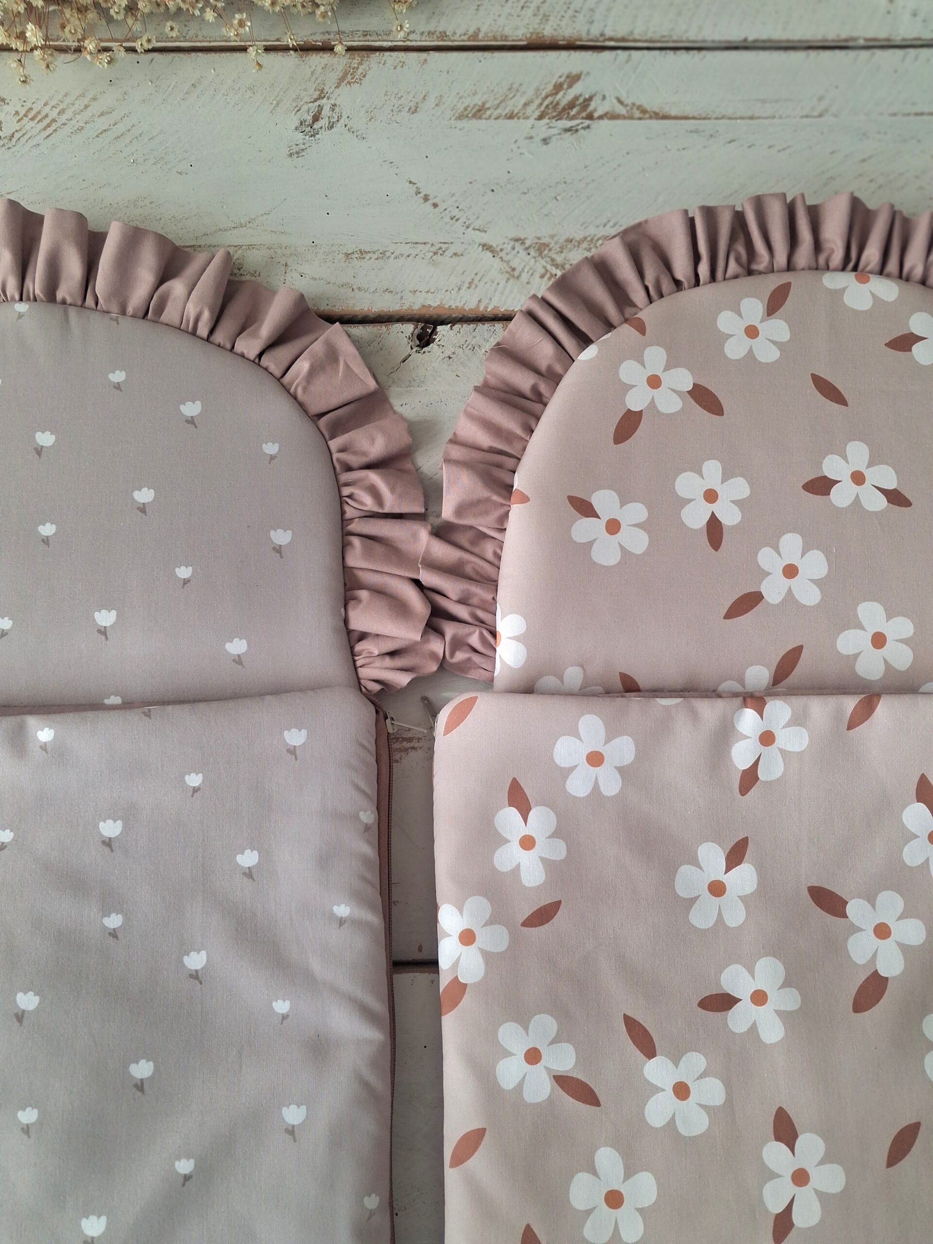 Każdy model śpiworka został wykończony uroczą falbanką, która dodaje mu elegancji i stylu. Motyw kwiatowy nadaje delikatności i romantycznego charakteru, idealnie wpisując się w dziecięce aranżacje.