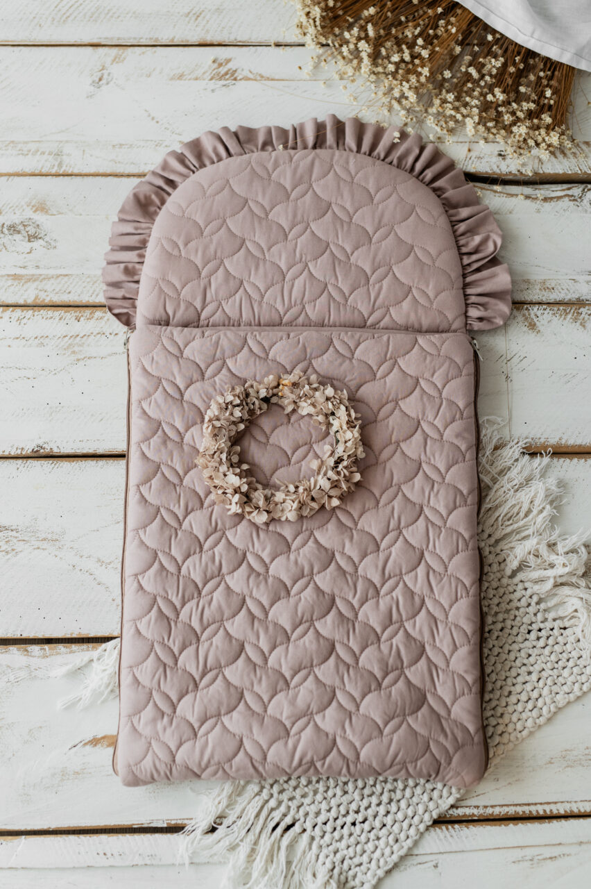 Każdy model śpiworka został wykończony uroczą falbanką, która dodaje mu elegancji i stylu. Motyw pikowania nadaje delikatności i romantycznego charakteru, idealnie wpisując się w dziecięce aranżacje.