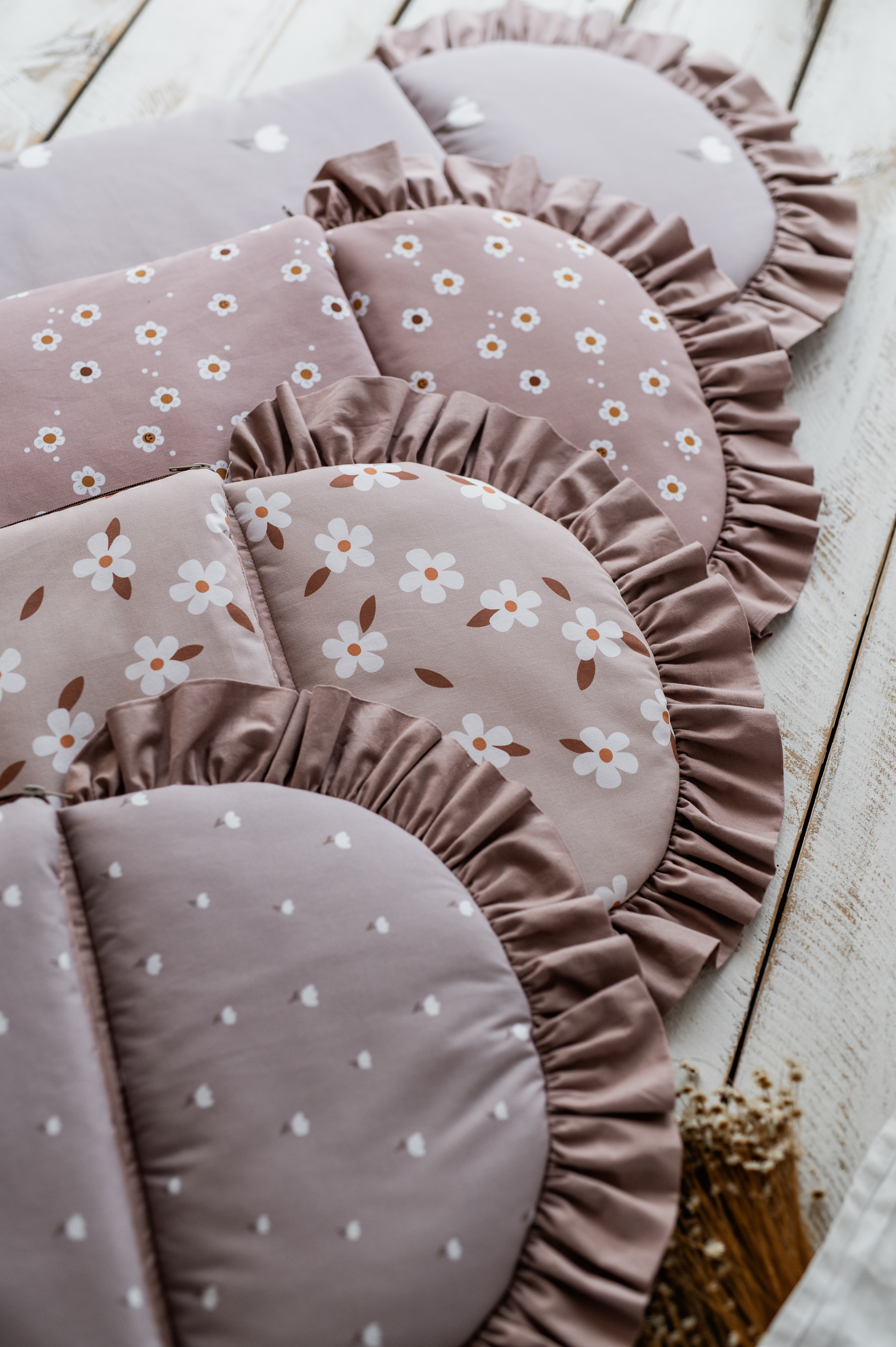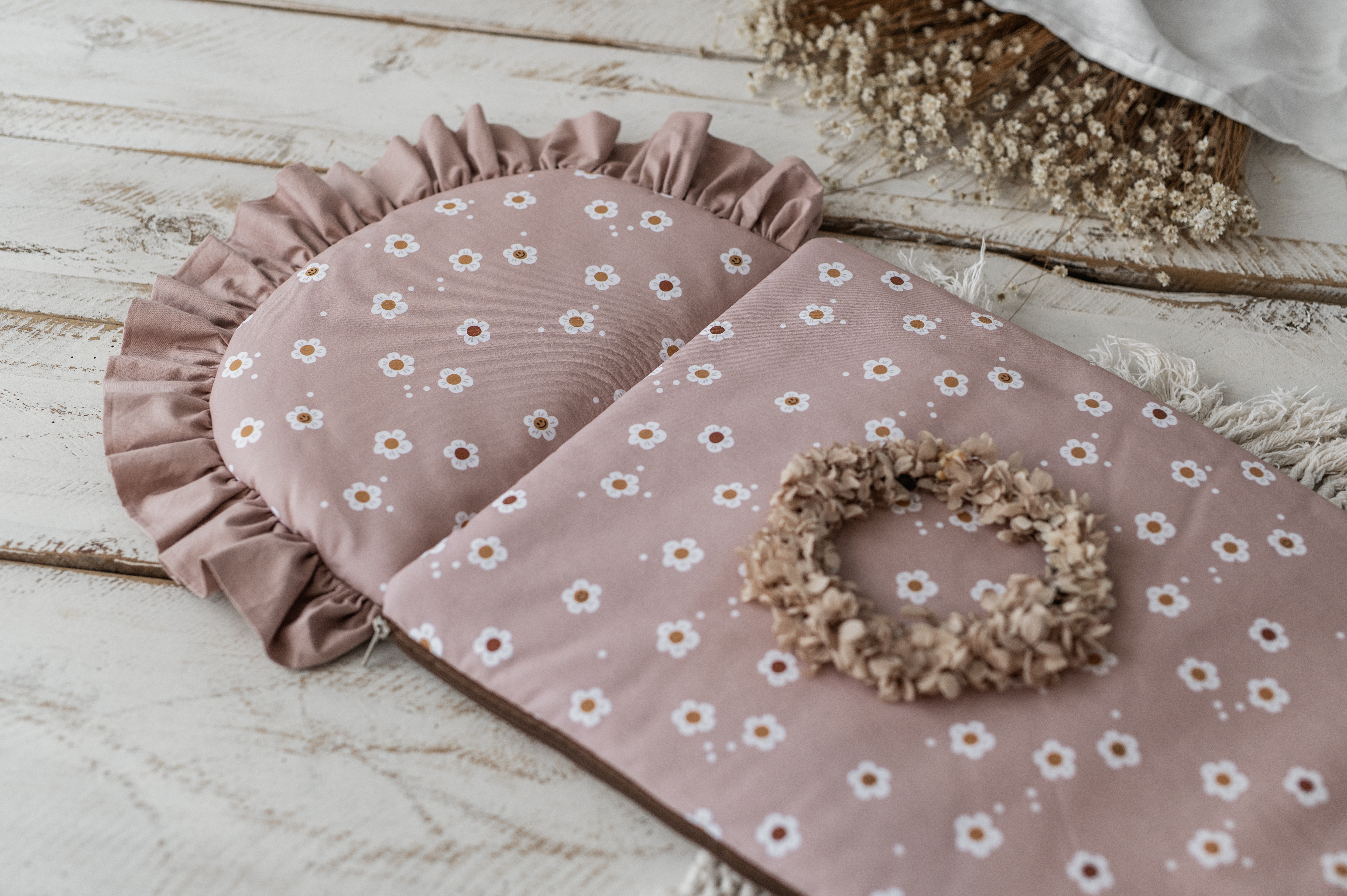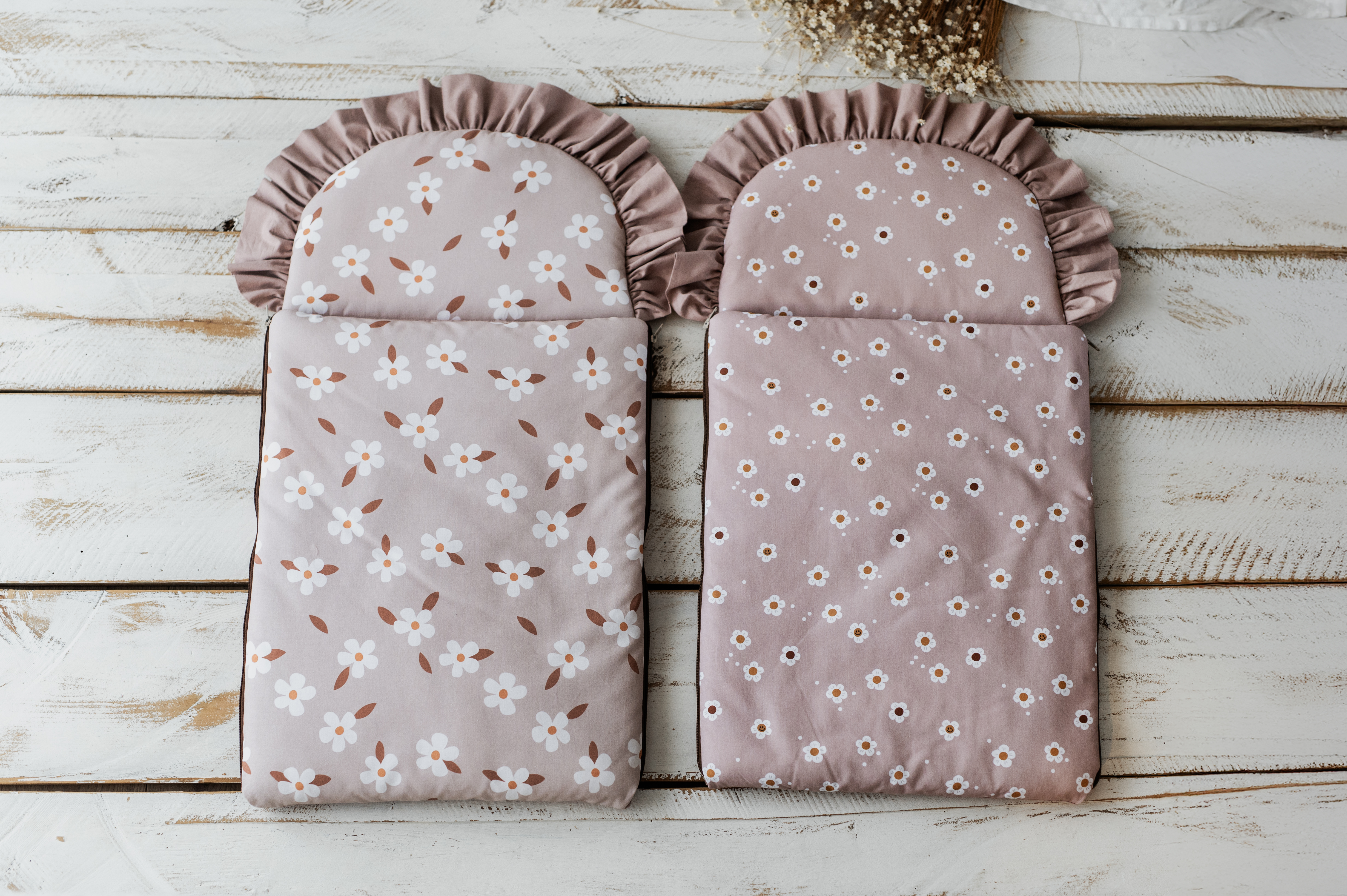 Każdy model śpiworka został wykończony uroczą falbanką, która dodaje mu elegancji i stylu. Motyw kwiatowy nadaje delikatności i romantycznego charakteru, idealnie wpisując się w dziecięce aranżacje.