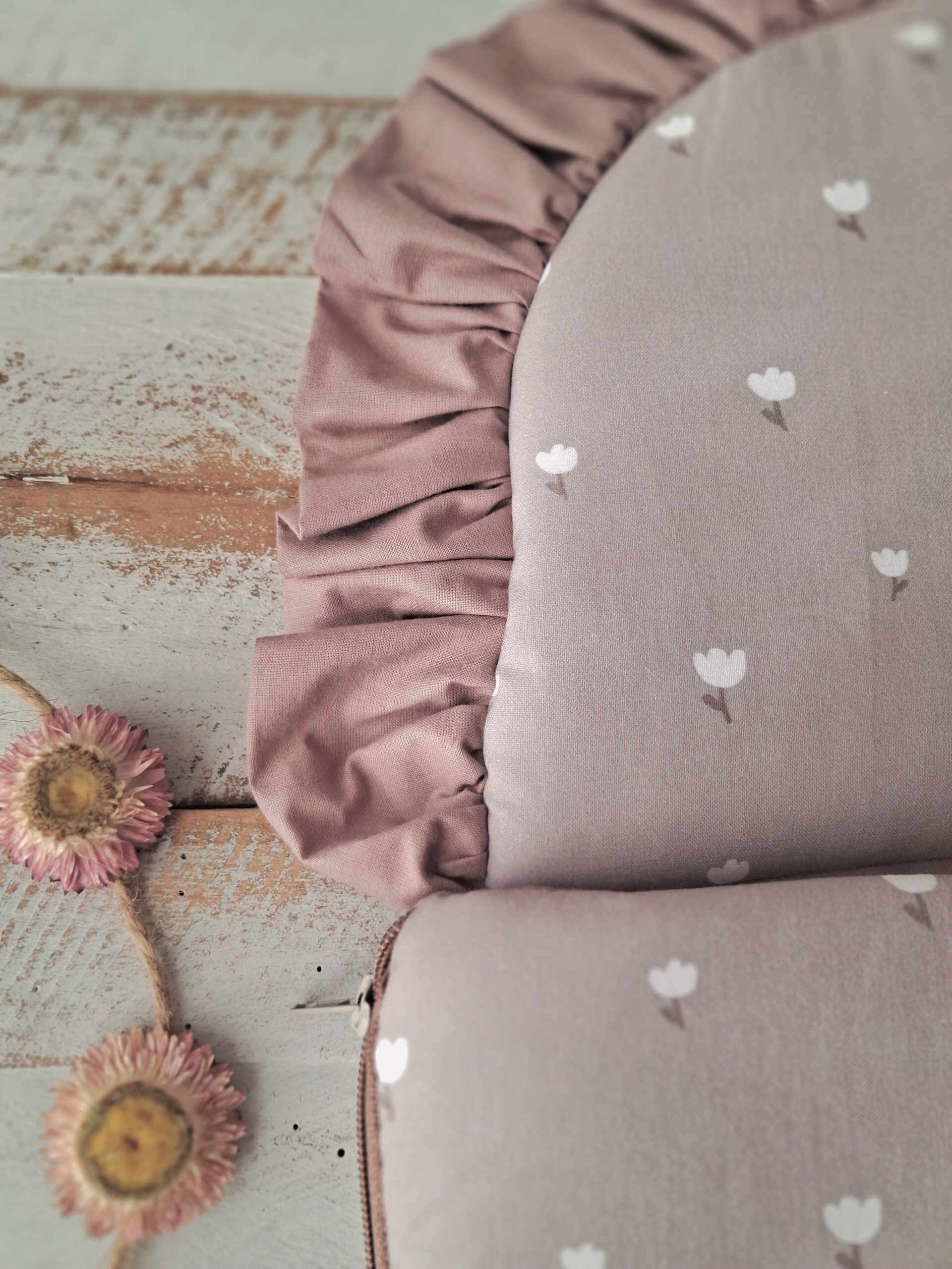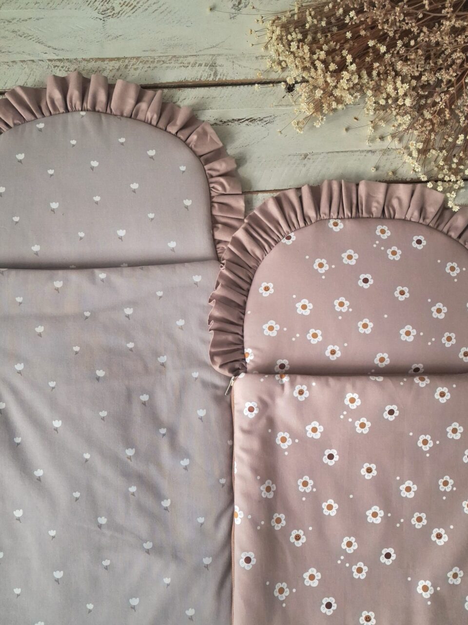 Każdy model śpiworka został wykończony uroczą falbanką, która dodaje mu elegancji i stylu. Motyw kwiatowy nadaje delikatności i romantycznego charakteru, idealnie wpisując się w dziecięce aranżacje.