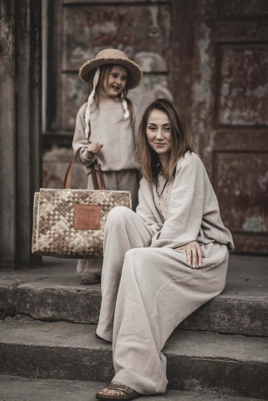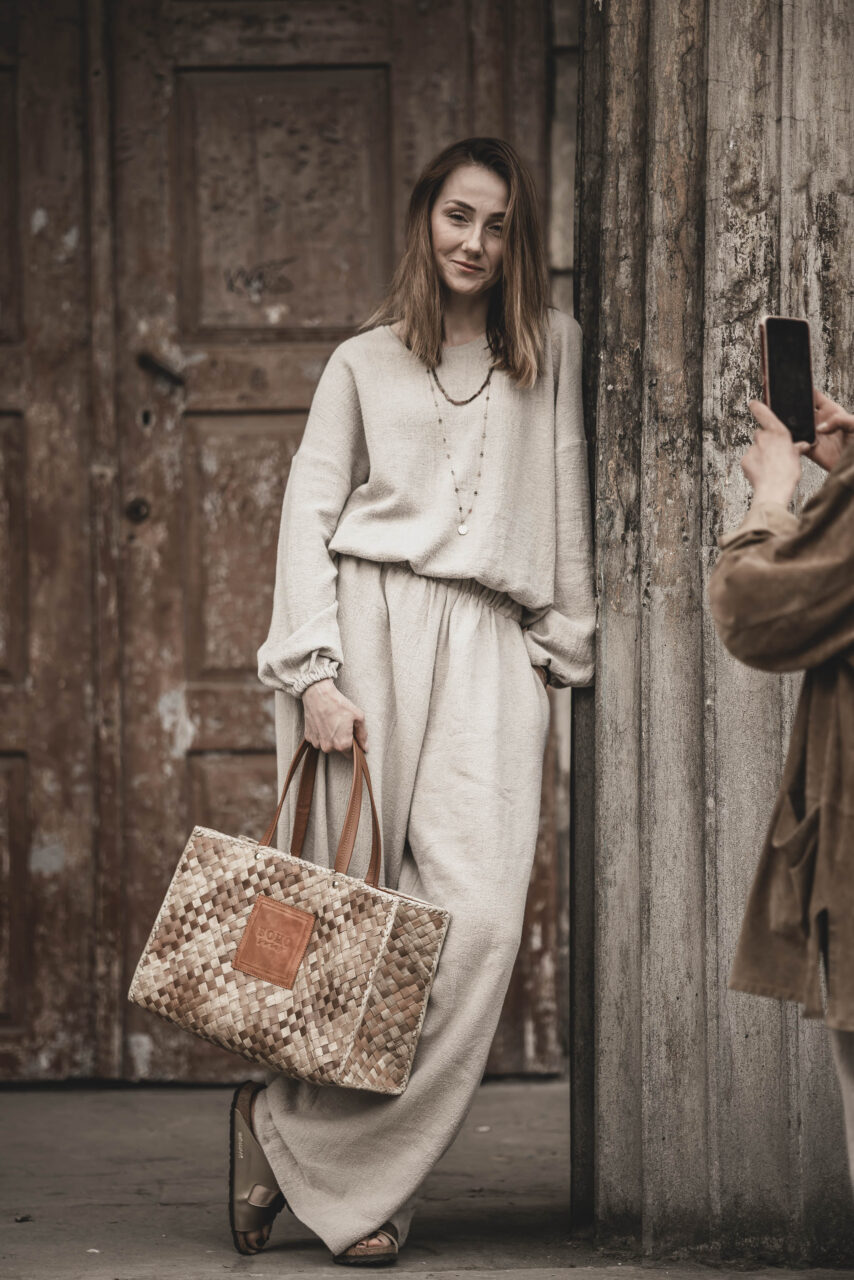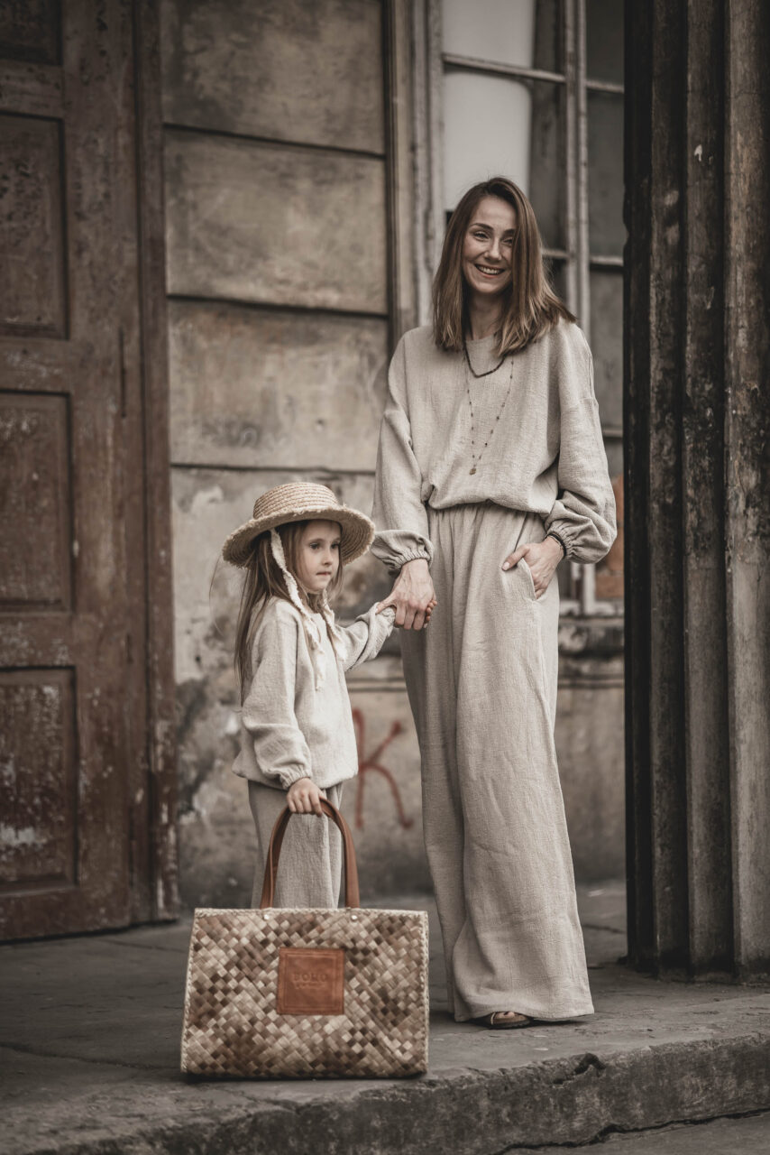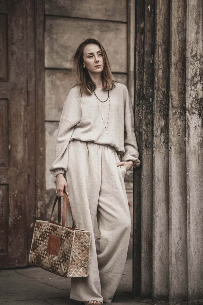 Na co dzień – połącz z lnianą bluzą, tworząc wygodny, casualowy zestaw idealny na spacer, zakupy lub relaks w domu.