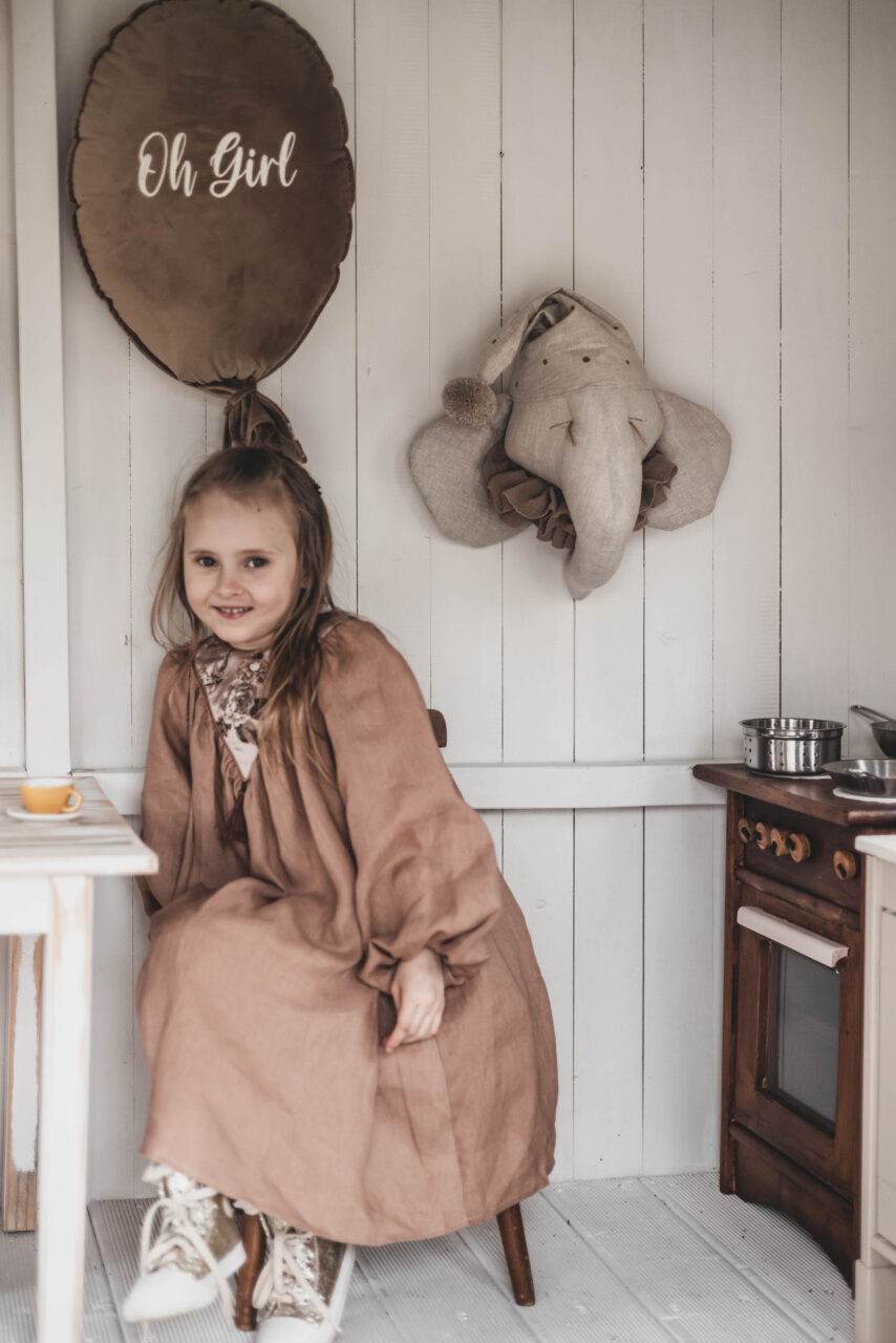 Lniana sukienka szyta z 100% litewskiego lnu typu stonewashed.