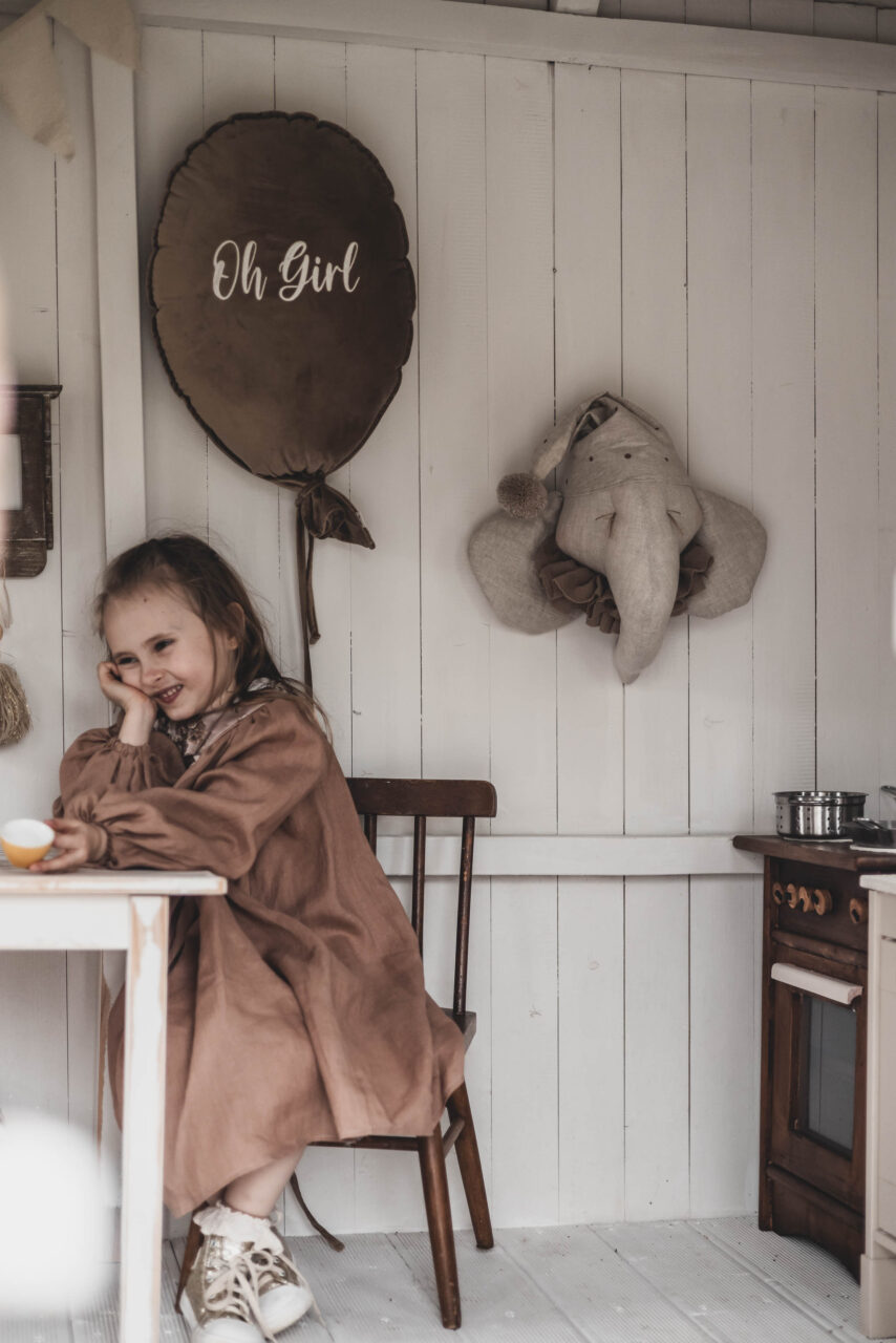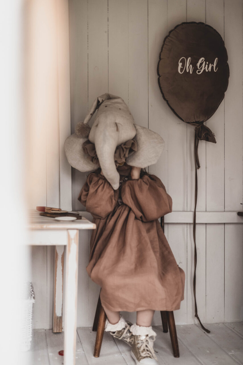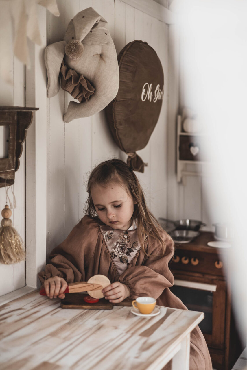 Sukienka beżowa lniana Marysia retro kokos 5-10 lat