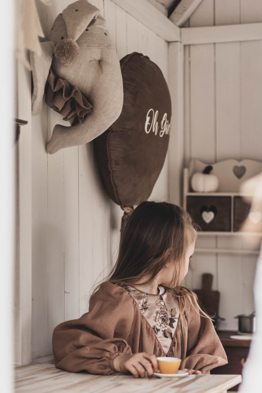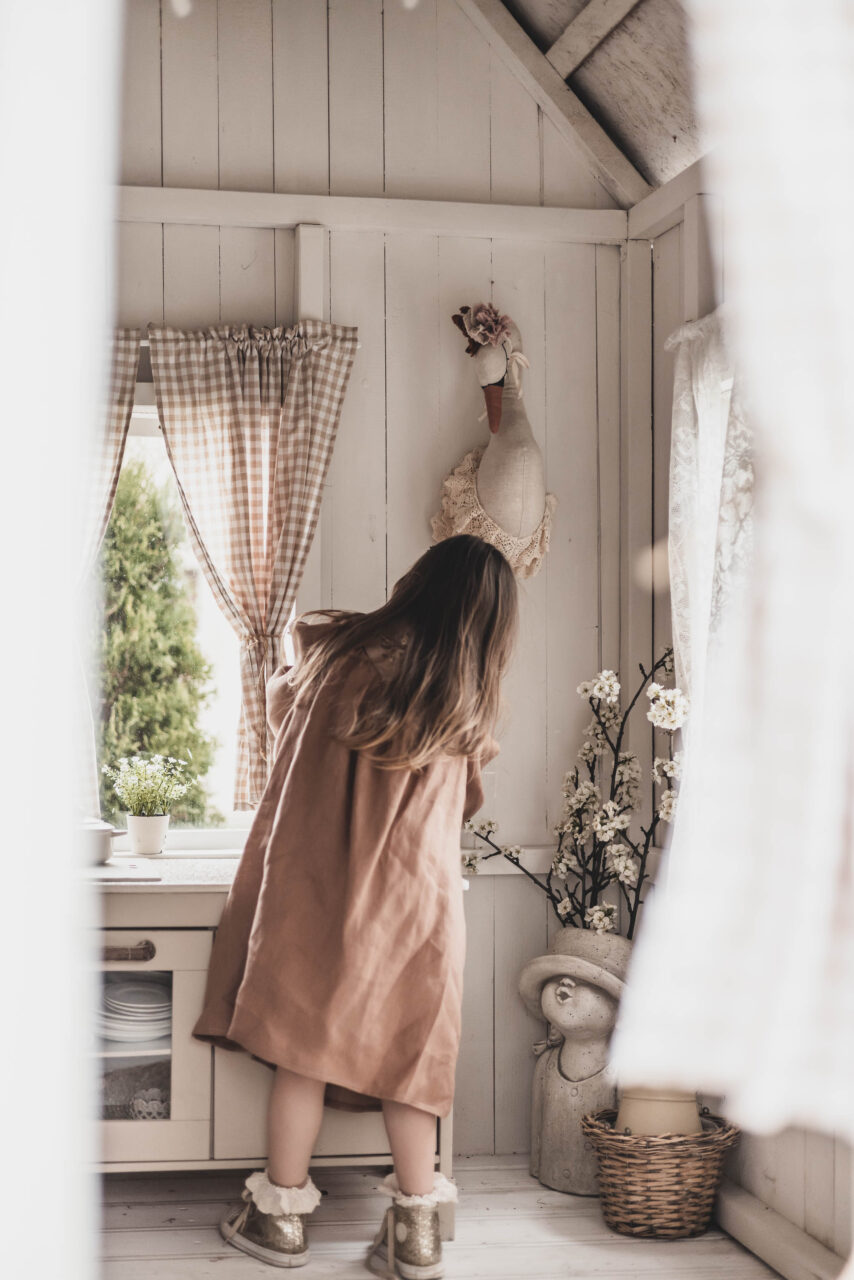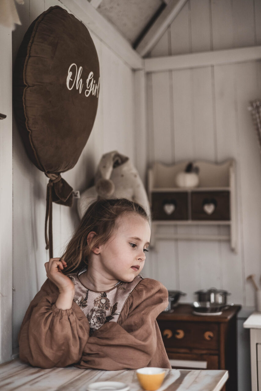 Sukienka beżowa lniana Marysia retro kokos 5-10 lat