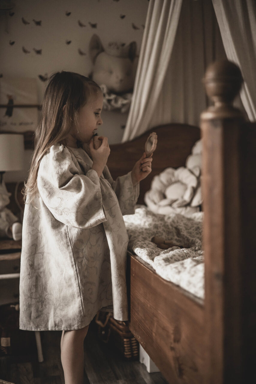 Lniana sukienka szyta z 100% litewskiego lnu typu stonewashed.