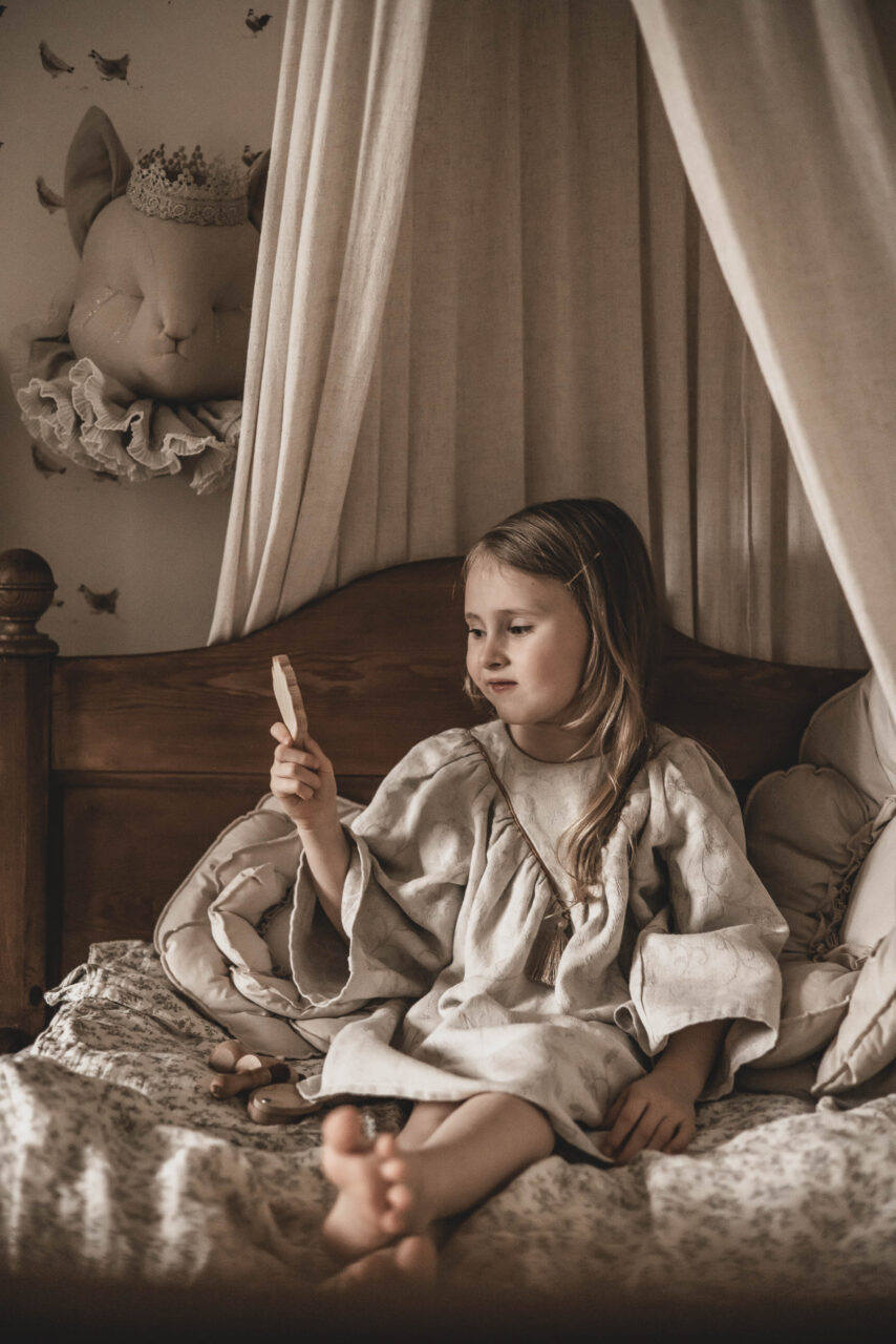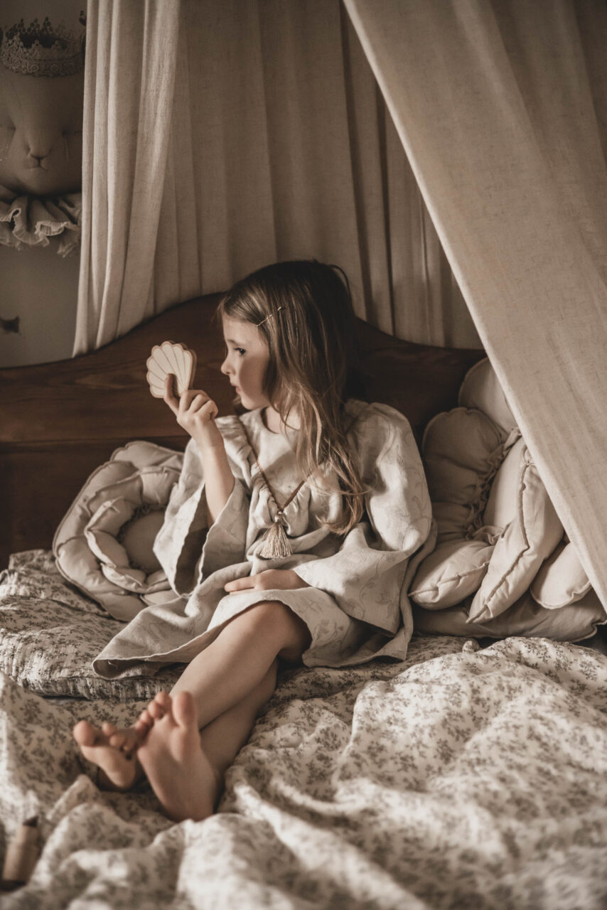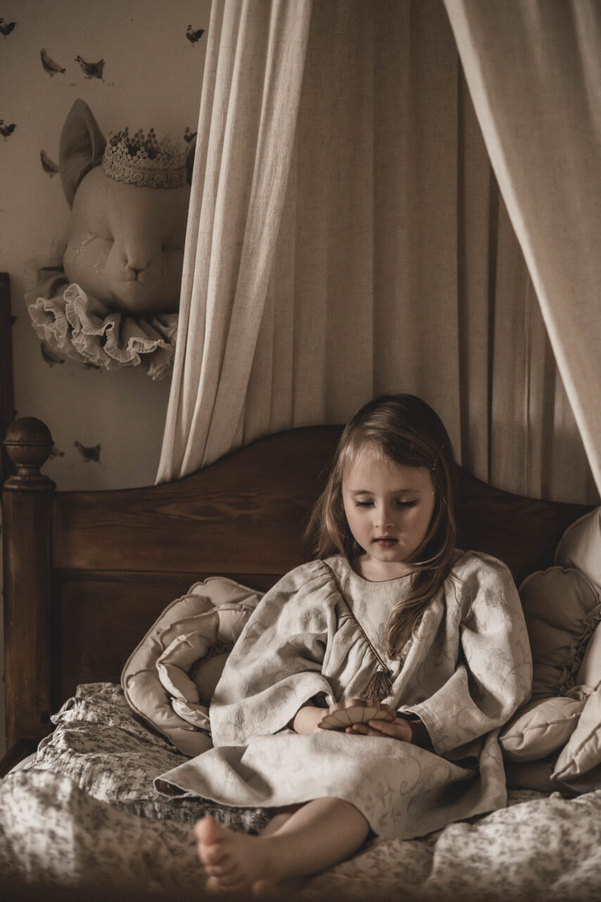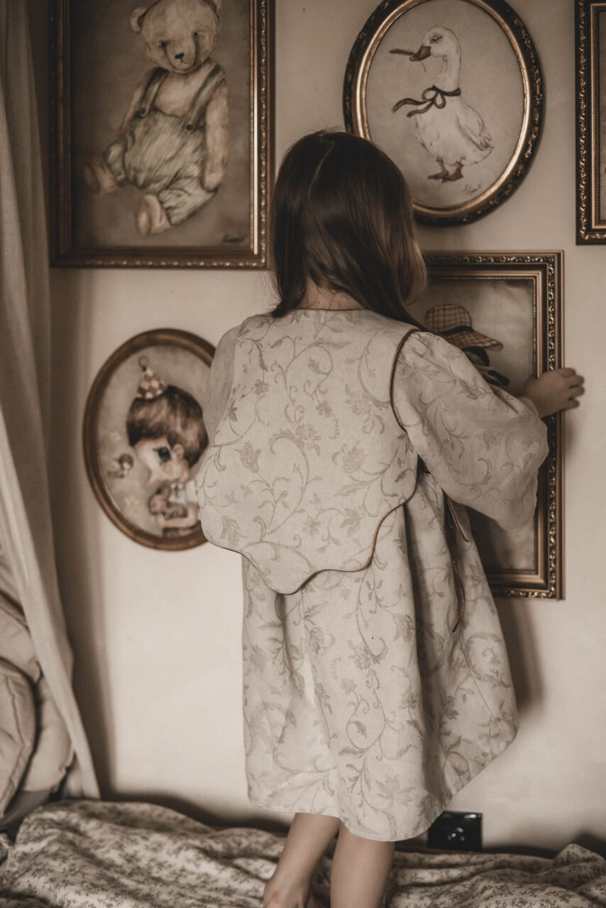 Sukienka lniana retro zwiewna dla dziewczynki royal Marysia