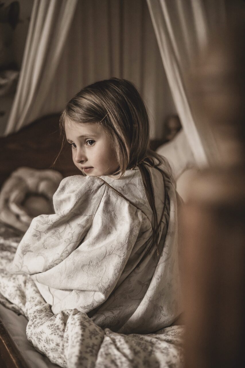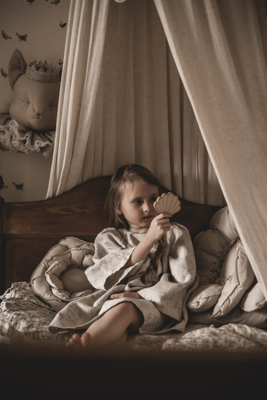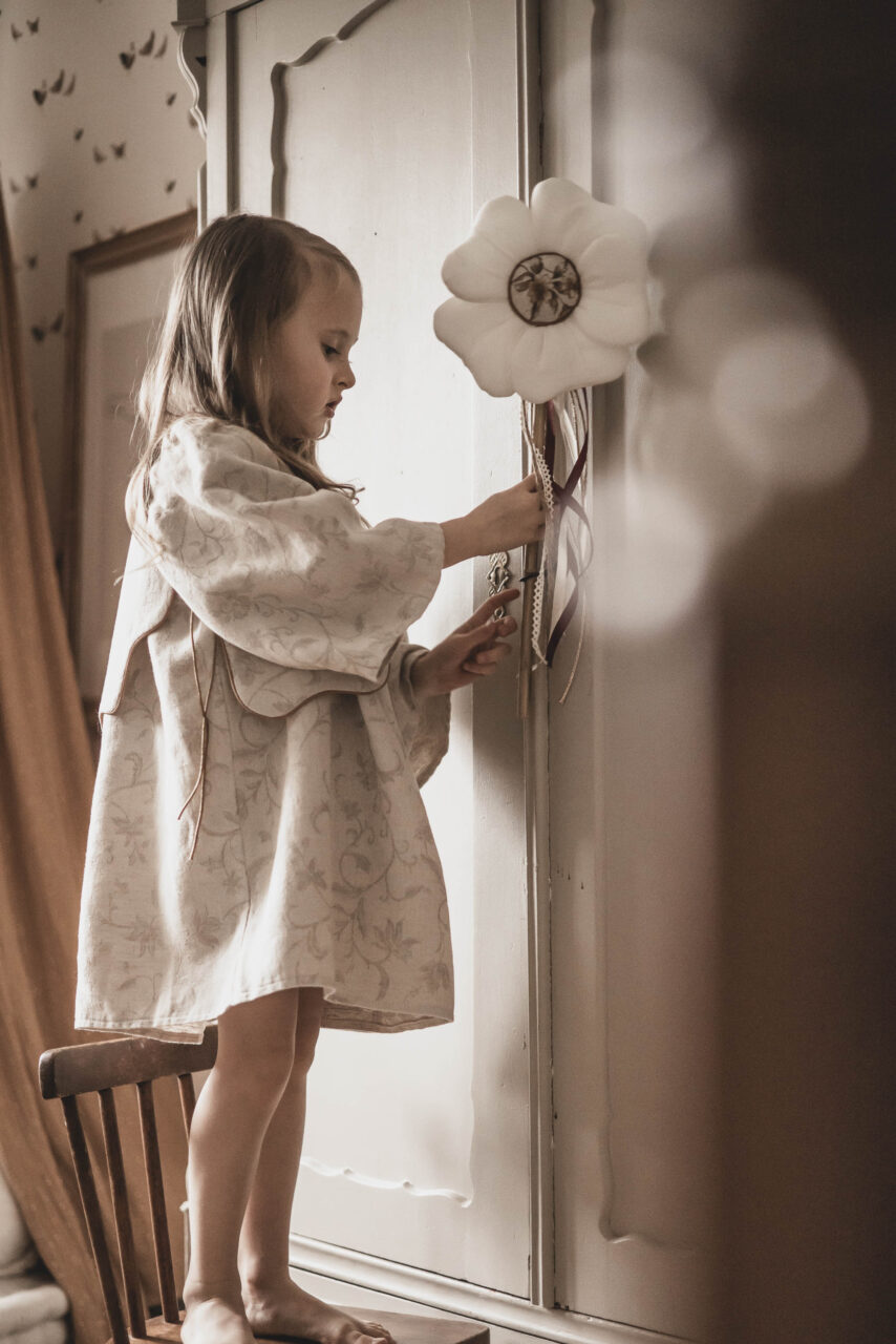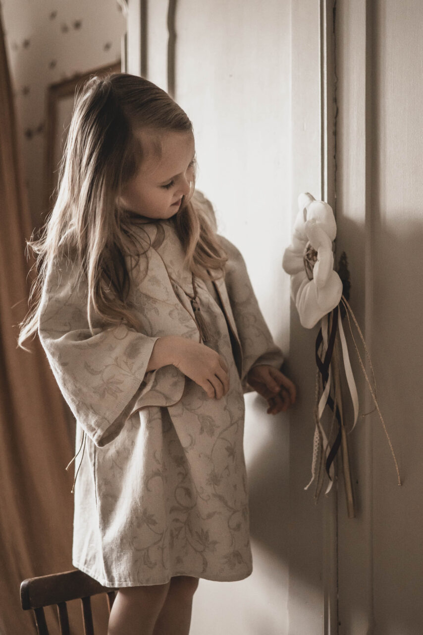 Sukienka lniana retro zwiewna dla dziewczynki royal Marysia