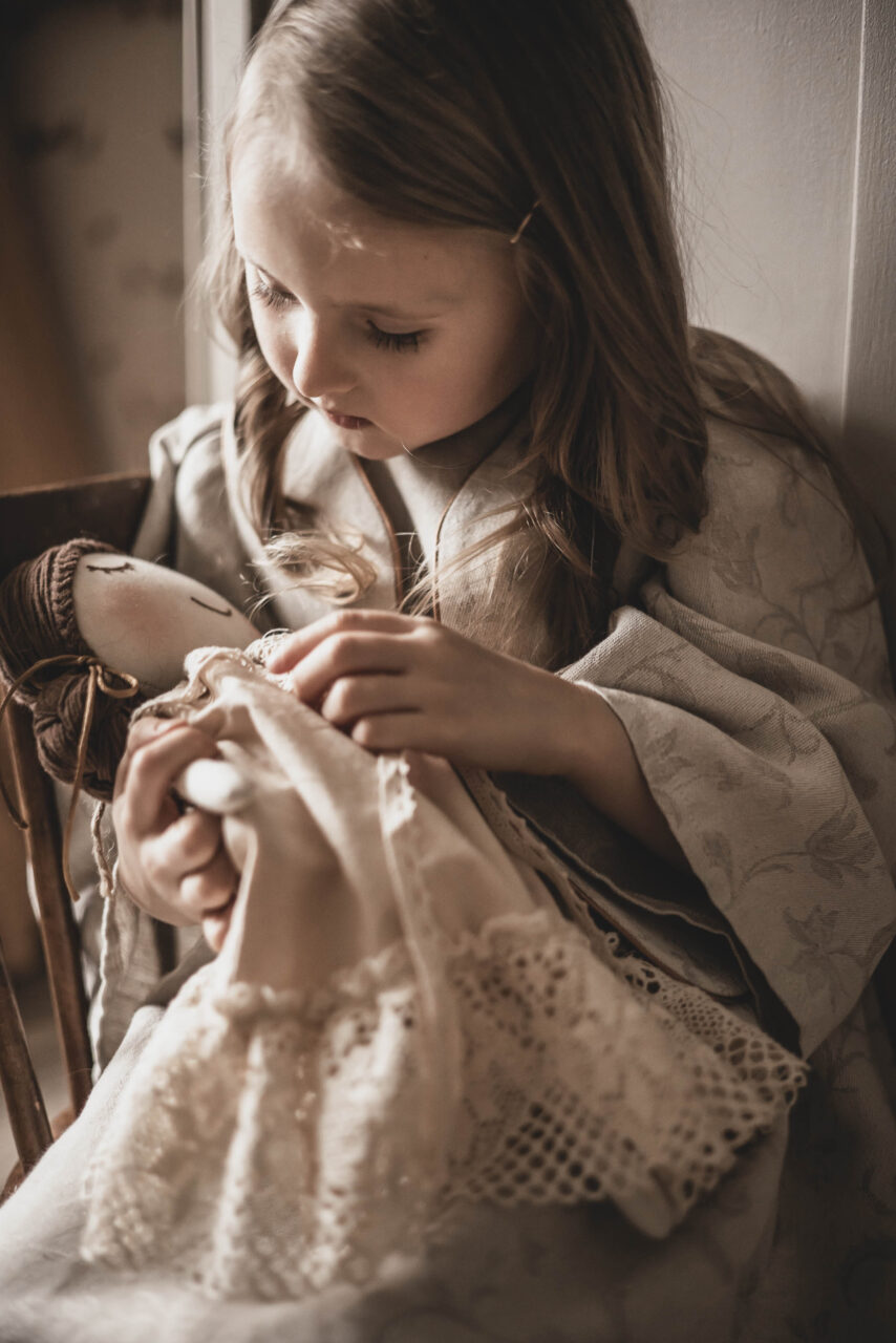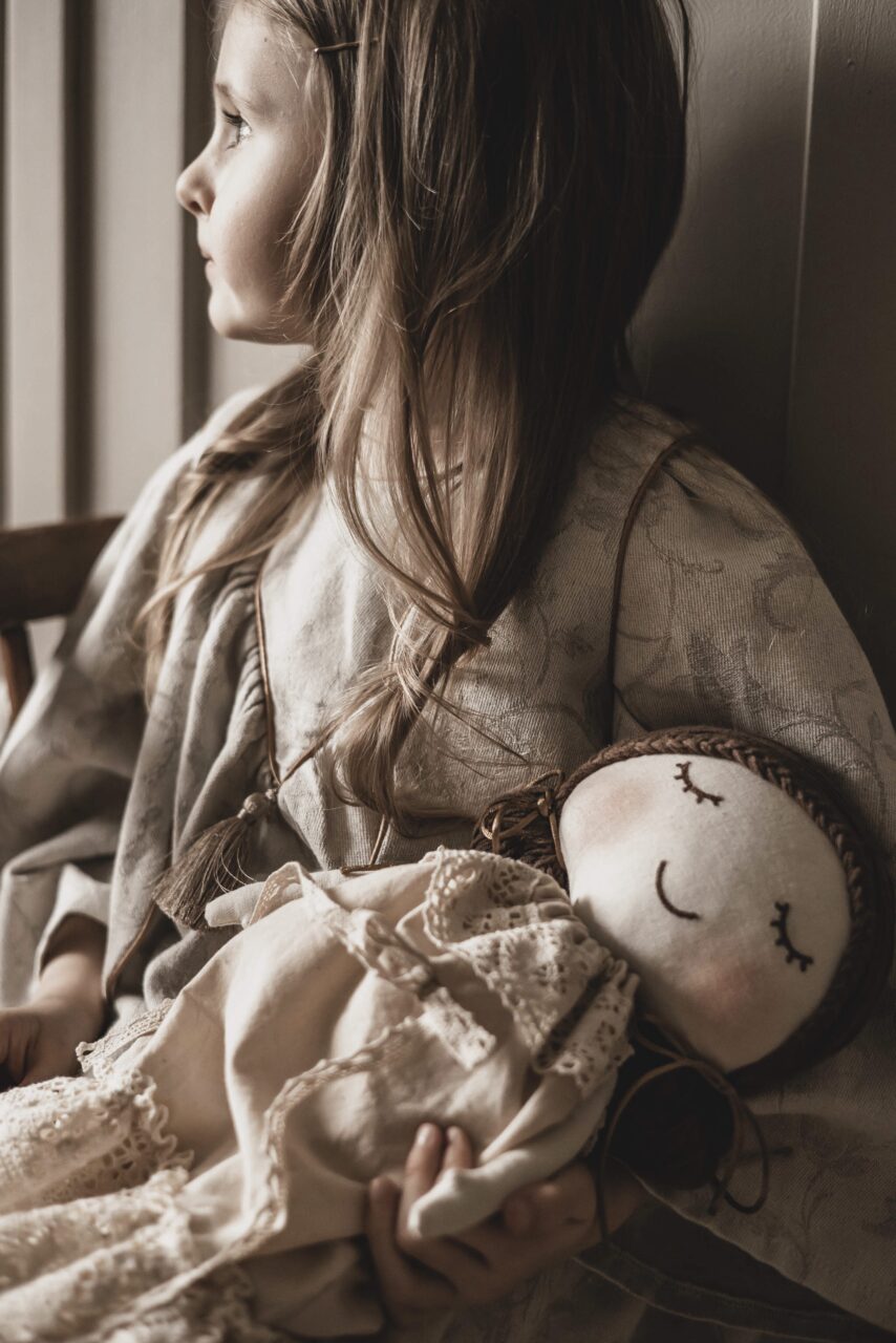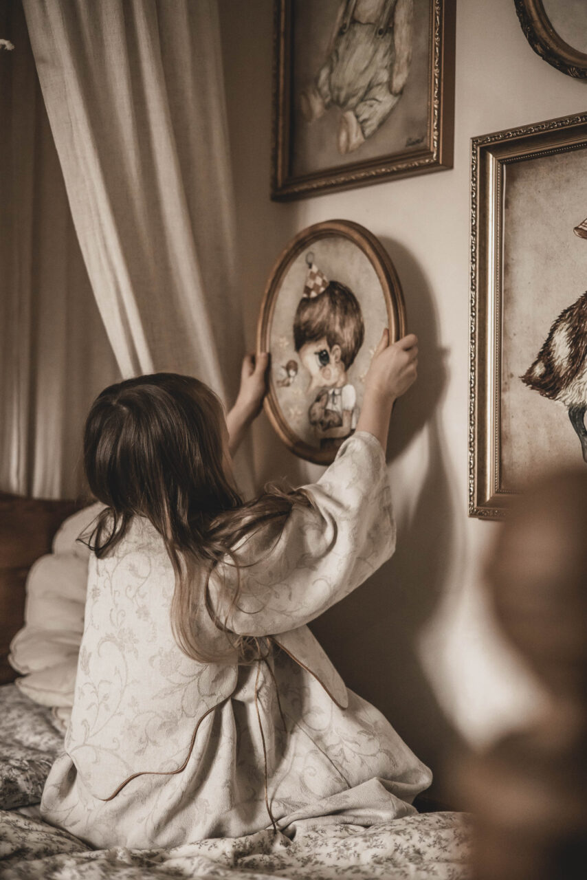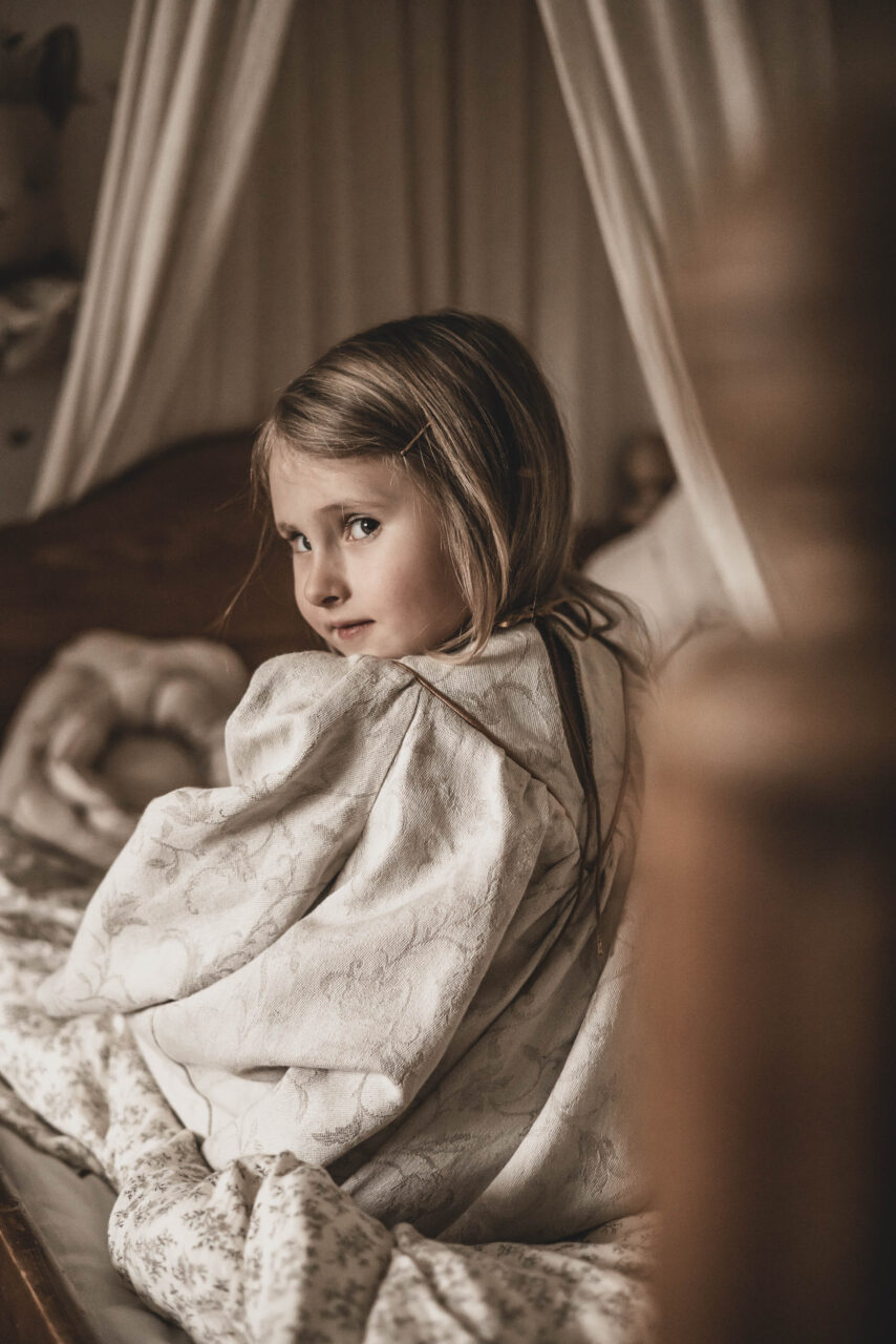 Sukienka lniana retro zwiewna dla dziewczynki royal Marysia
