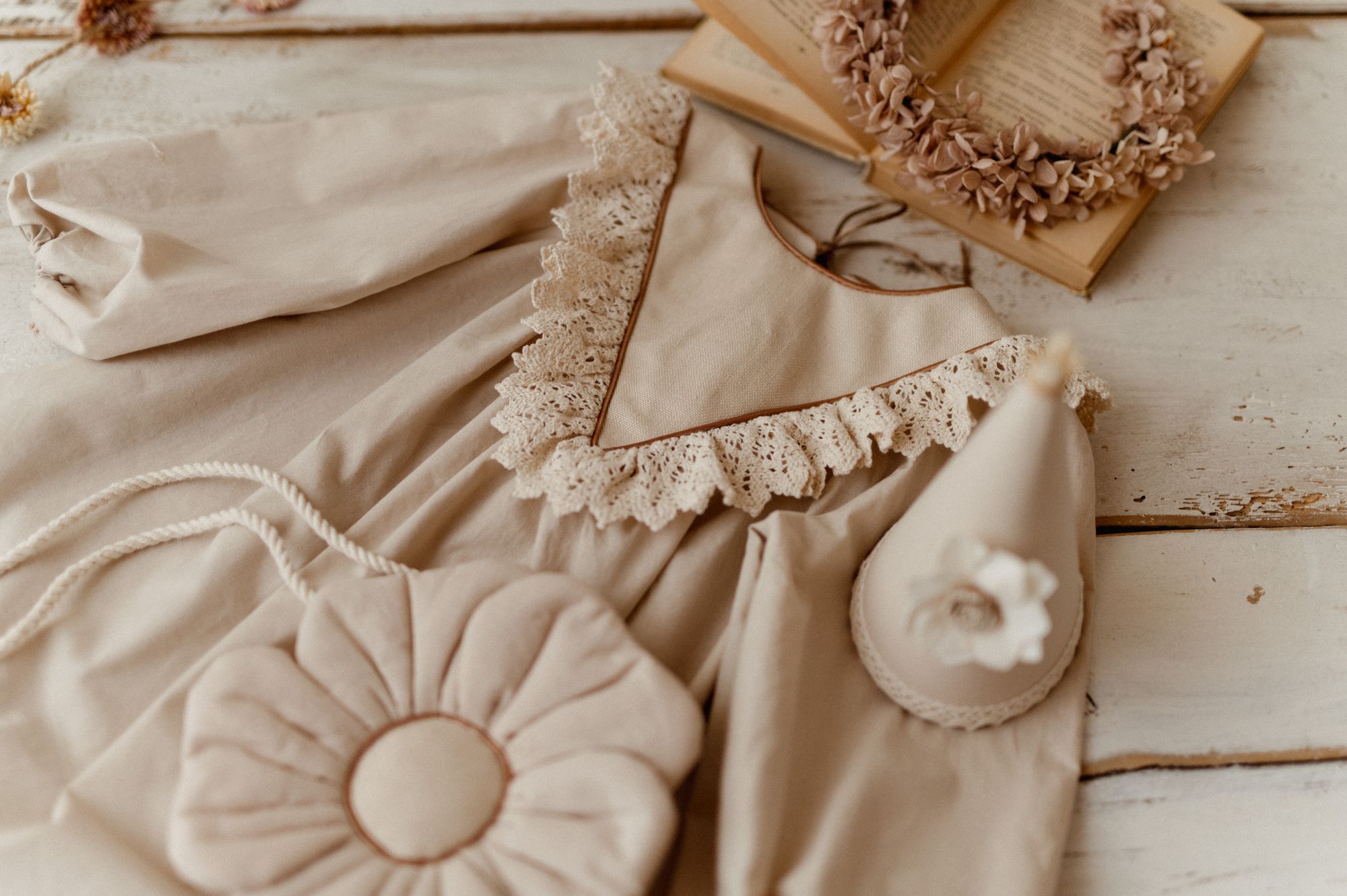 Fason luźny i wygodny. Idealna na wszelkie uroczystości, czy do sesji zdjęciowych. Krój sukienki ponadczasowy w stylu vintage. Sukienka do kolana z długim ,zbluzowanym rękawkiem, wykończonym gumeczką. Uzupełnieniem stylizacji może być jeden z naszych cudownych kołnierzyków , kamizelka czy różdżka, czapeczka urodzinowa. Piękny koronkowy dekolt podkreślony starannie wypustką i 🙂