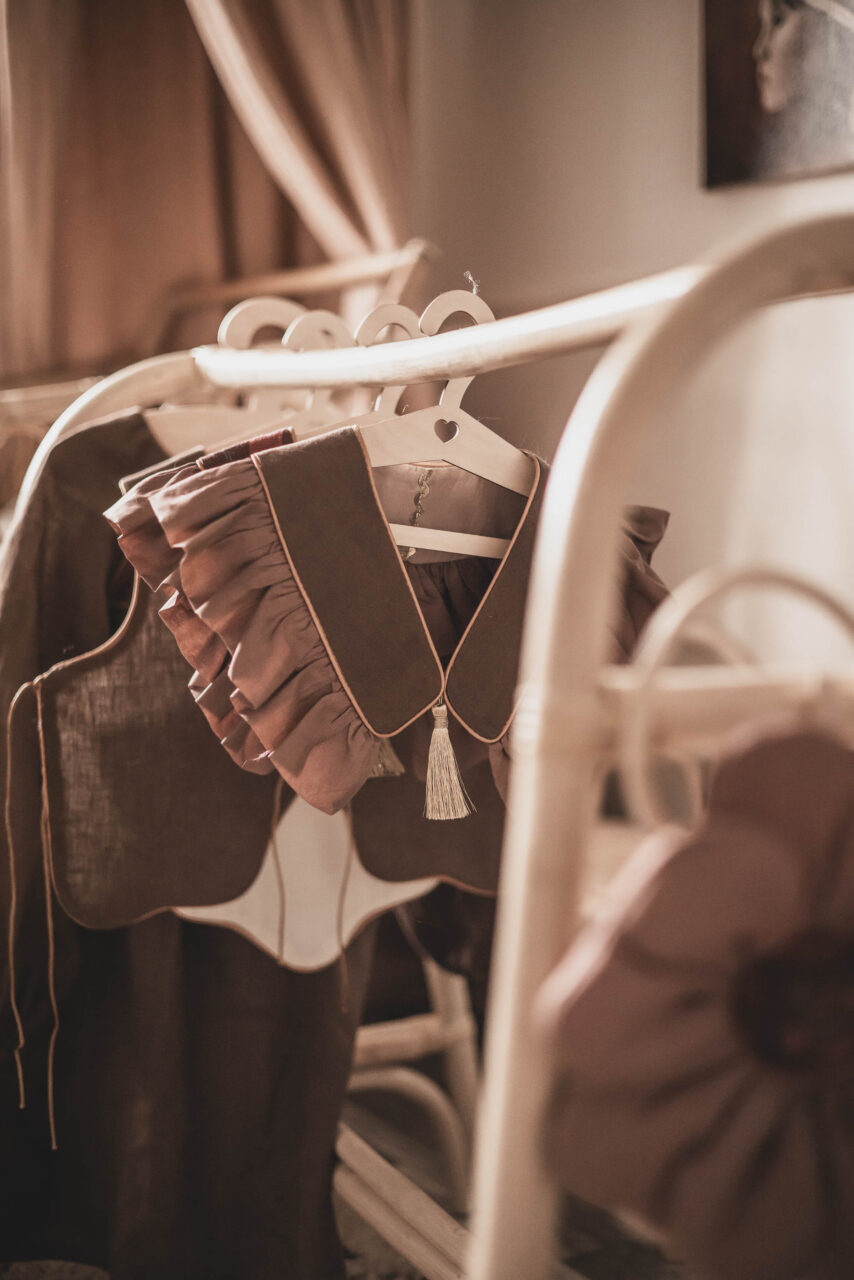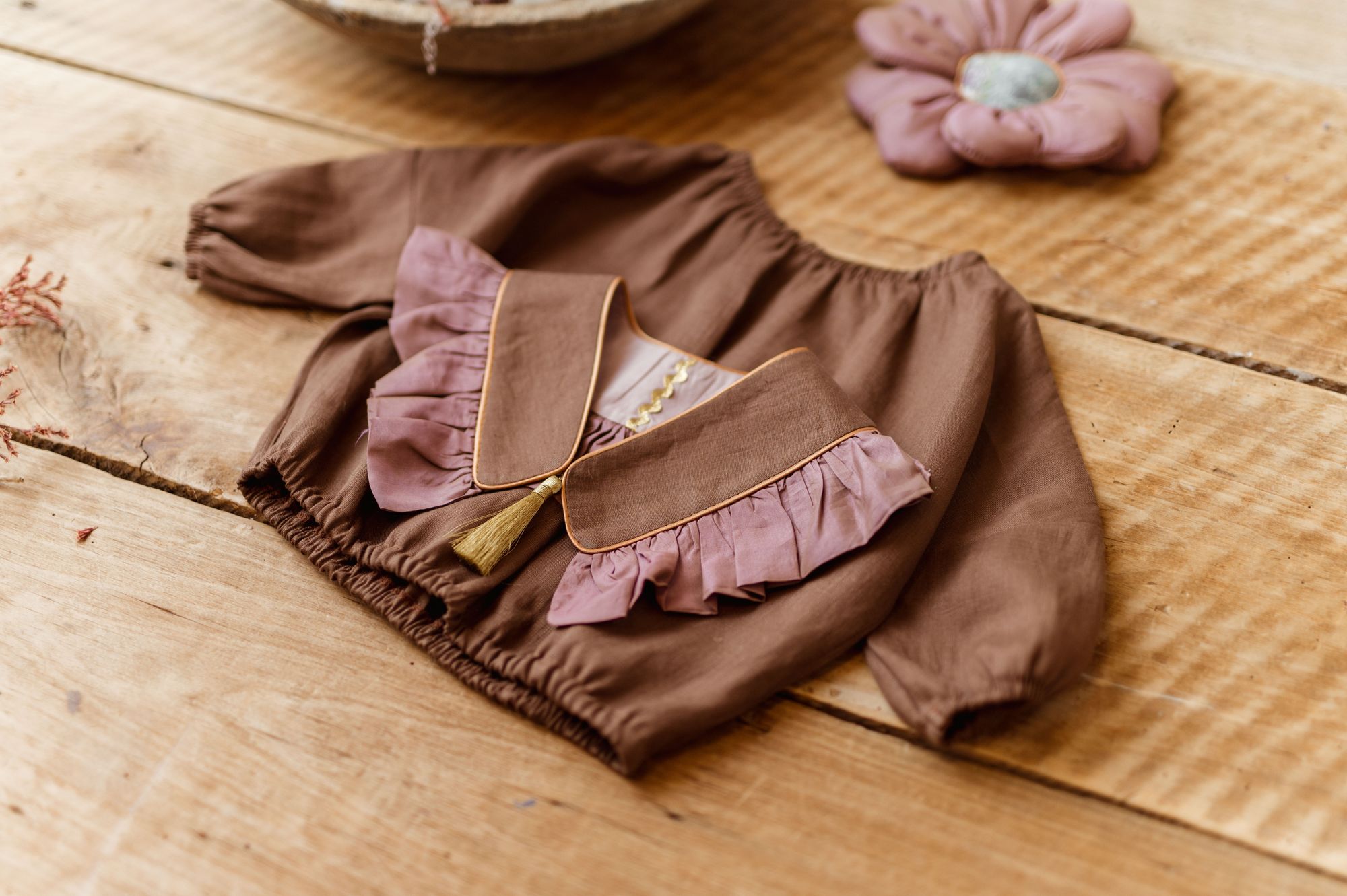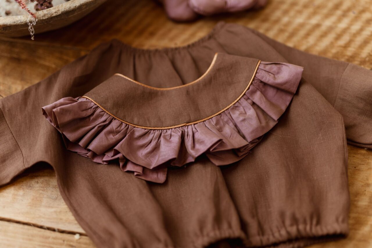 Vintage kołnierzyk z falbanką lniany dla dziecka coco rose gold