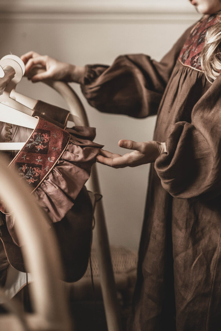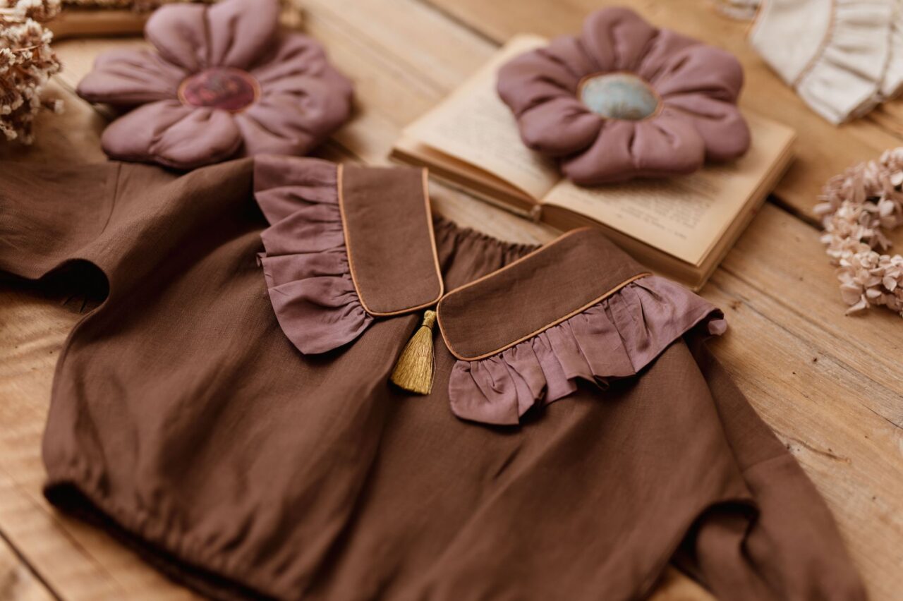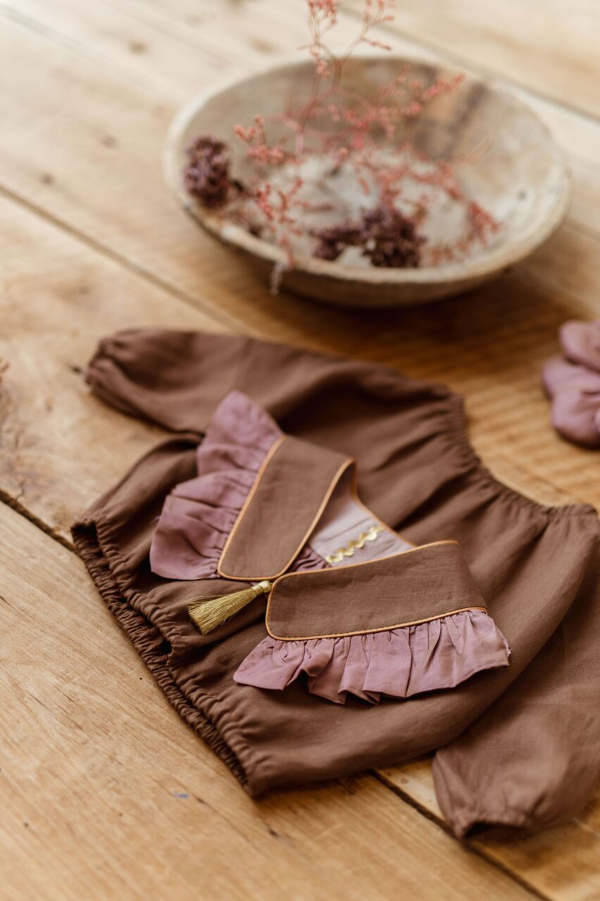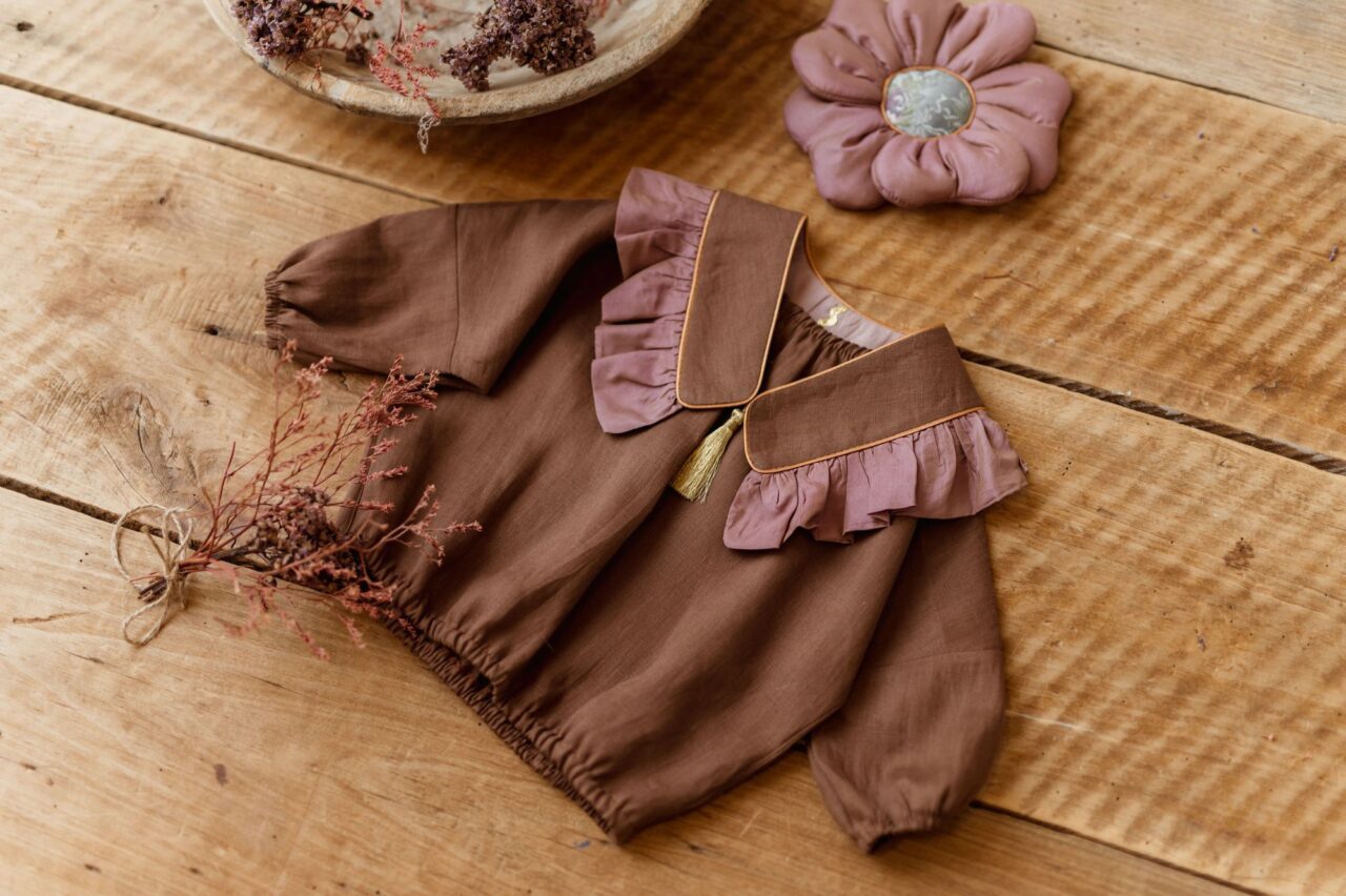 Vintage kołnierzyk z falbanką lniany dla dziecka coco rose gold