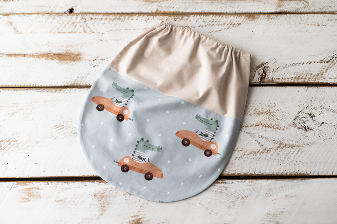 Worek został wykonany z naturalnej bawełny o gramaturze 155 g/m², co gwarantuje jego wytrzymałość i przyjemną w dotyku strukturę. Dzięki solidnemu materiałowi worek posłuży przez długi czas, a jego praktyczne zamknięcie na sznurek sprawia, że nawet najmłodsze dzieci bez trudu mogą go obsługiwać, ucząc się przy tym samodzielności.